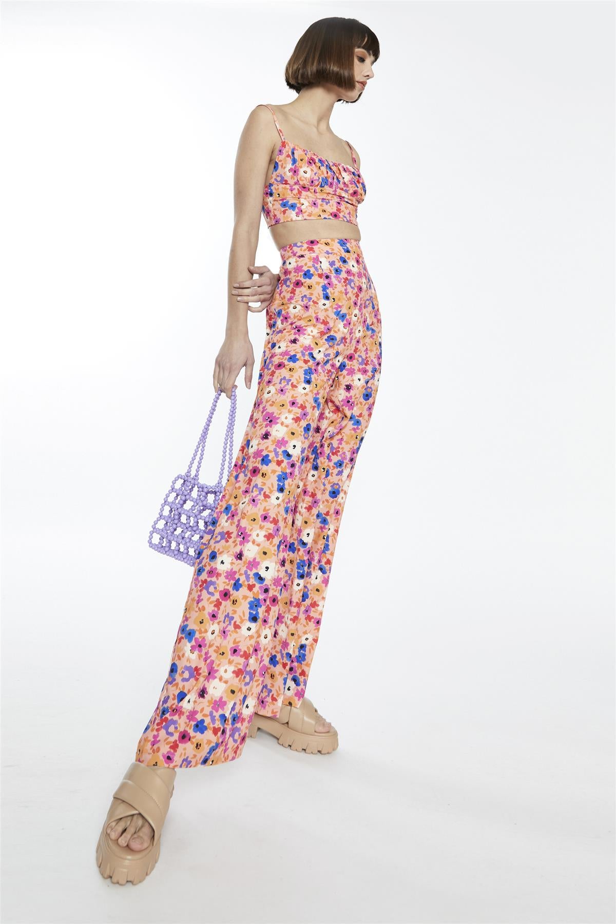 Glamorous Women's Multi Orange Floral High-Waist Loose-Trousers. These multi-orange floral high-waist loose trousers are a bold and breezy addition to your wardrobe. The vibrant floral print brings a splash of colour and energy to your outfit, perfect for brightening up your day. Designed with a high-waisted fit, these trousers create a flattering silhouette while offering all-day comfort. The loose, flowy cut makes them lightweight and easy to move in, ideal for warm weather or relaxed outings. Pair them with the matching top for a coordinated, head-turning look, or keep it simple with a solid tank or tee. Dress them up with heels for a night out or keep it casual with sandals or sneakers. These trousers are as versatile as they are fun, making them a standout piece for any occasion.