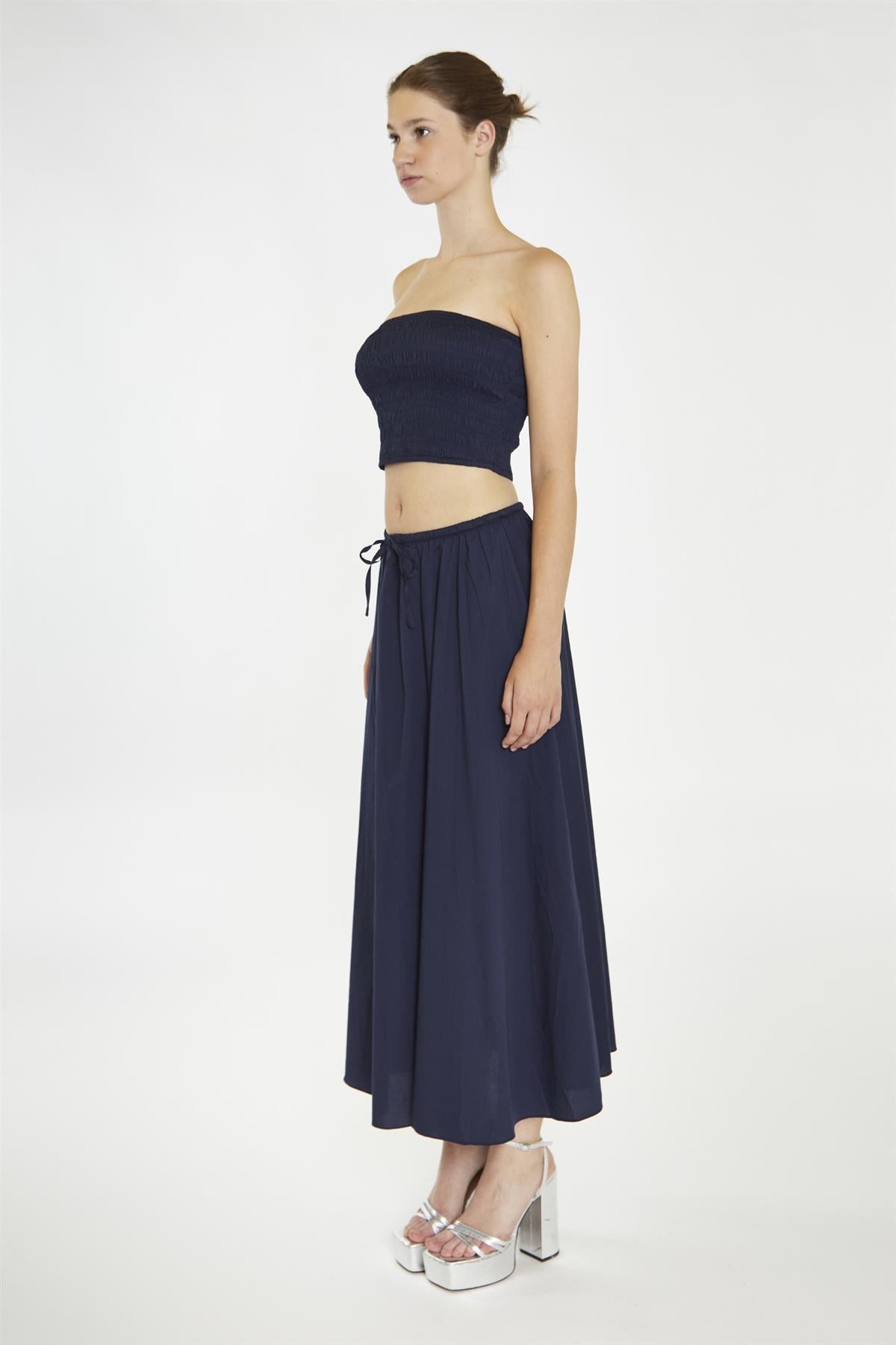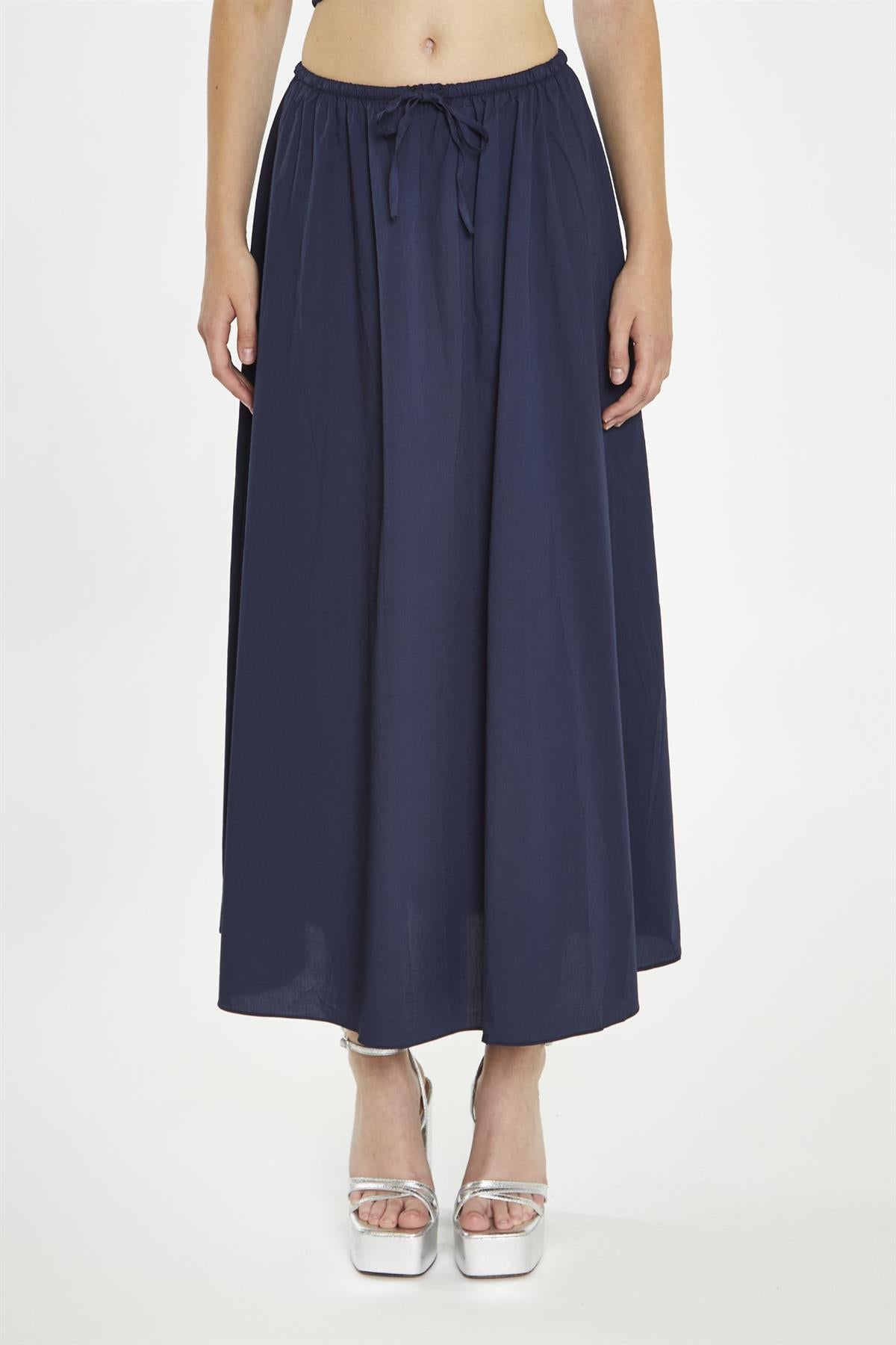 Glamorous Women's Navy Floaty Midaxi-Skirt. Effortless style made easy! Our Navy Floaty Midaxi-Skirt is versatile and perfect for any occasion! Its elasticated waistband guarantees a comfortable fit, while the a-line floaty style and midaxi length add a touch of femininity. And for a complete look, pair it with our coordinating top - that's a no-brainer!