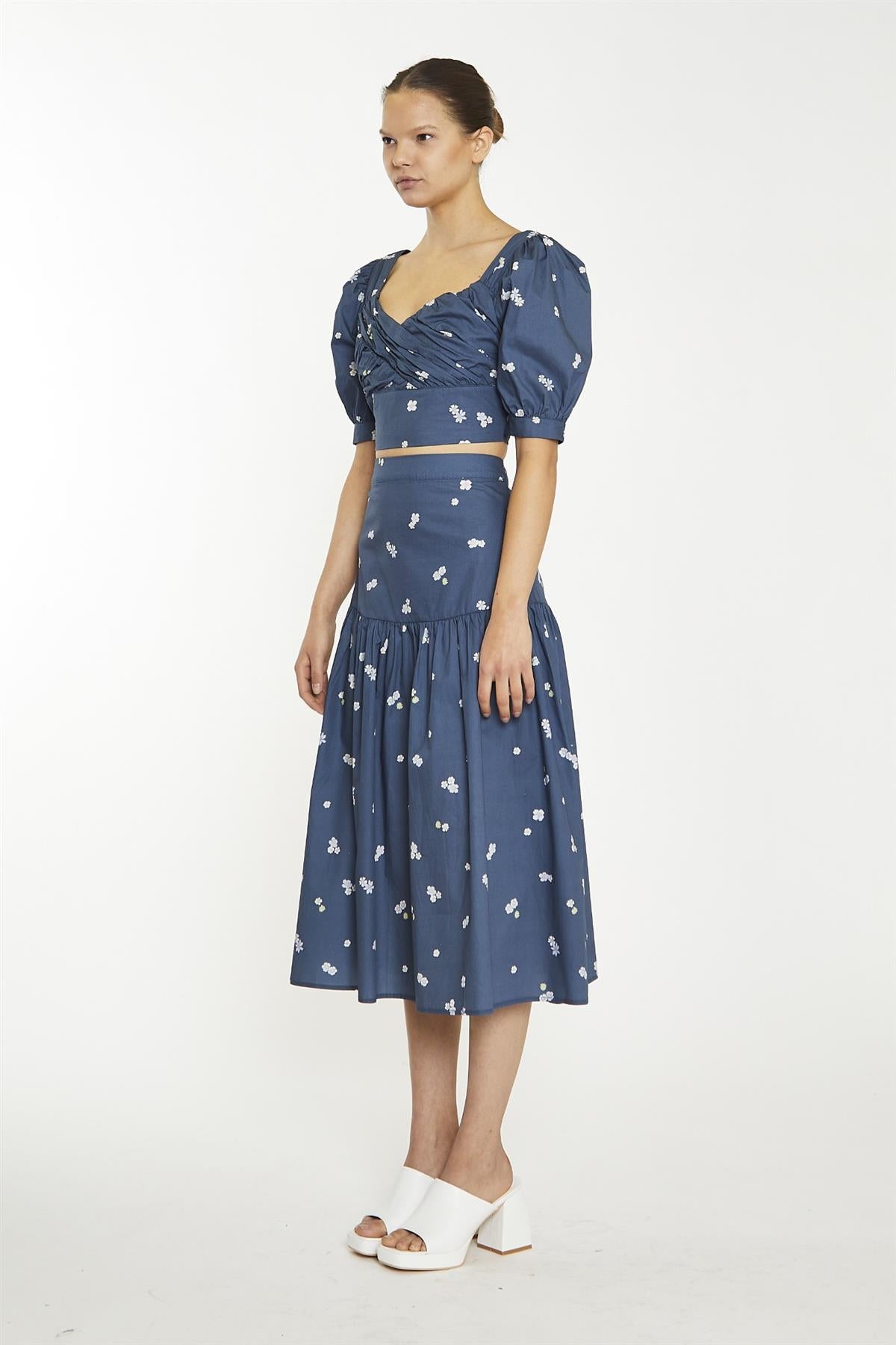 Glamorous Women's Navy Scattered Flower Sweetheart Neckline Crop-Top. This sweetheart-neckline crop-top is a charming blend of flirty and feminine, perfect for adding a touch of romance to your wardrobe. The scattered flower print brings a delightful spring-like feel, no matter the season. The elbow-length statement sleeves add a unique twist, giving this top a vintage-inspired vibe that's both stylish and comfortable. The cropped length hits just right, making it ideal for pairing with high-waisted bottoms. Team it up with the matching skirt for a coordinated look that's sure to turn heads, or mix it with your favourite jeans for a more casual ensemble. This top isn't just clothing; it's a mood-lifter that'll have you feeling pretty and confident from brunch dates to evening outings. The sweetheart neckline flatters your décolletage beautifully, adding a subtle touch of allure. So go ahead, make this your new favourite top - it's ready to become the star of countless outfits and compliments.
