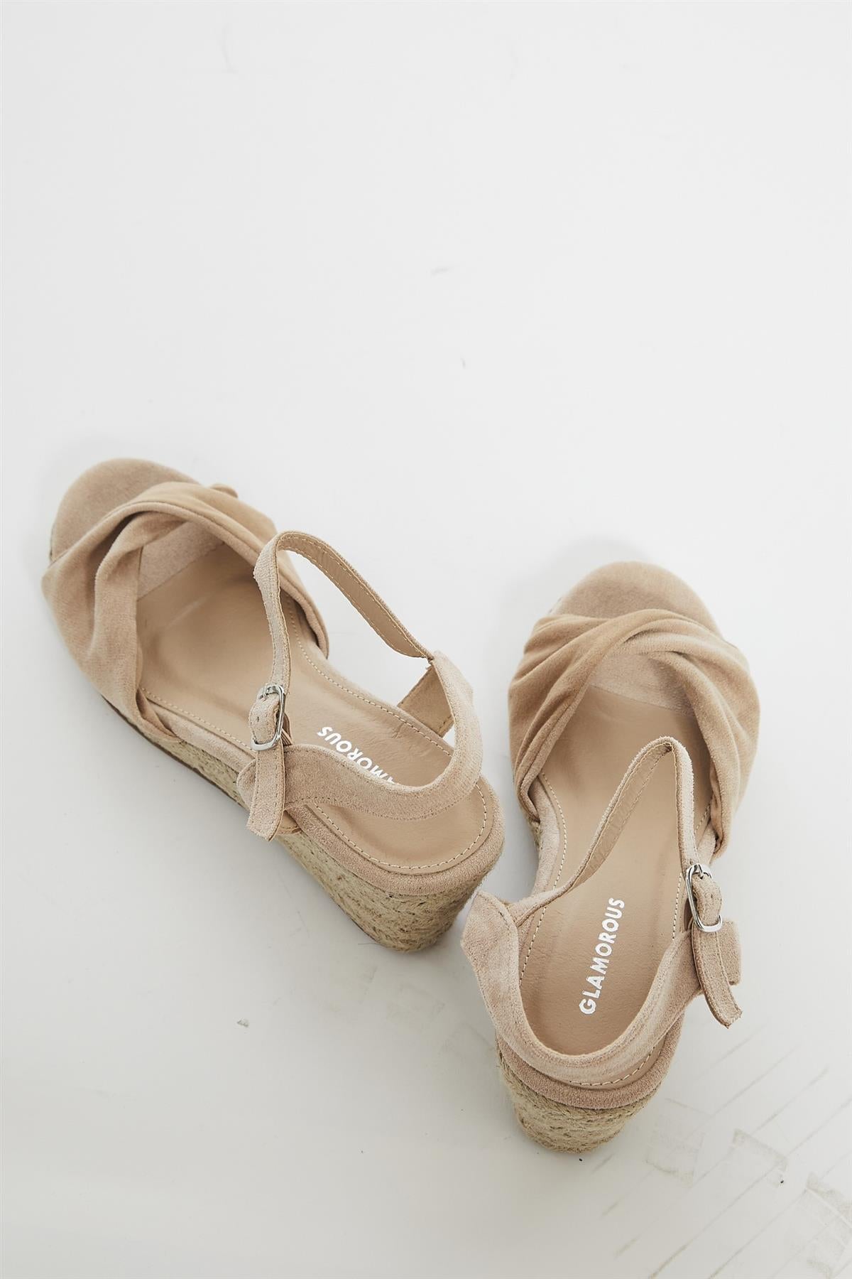 Nude Twist Front Wedge Sandals