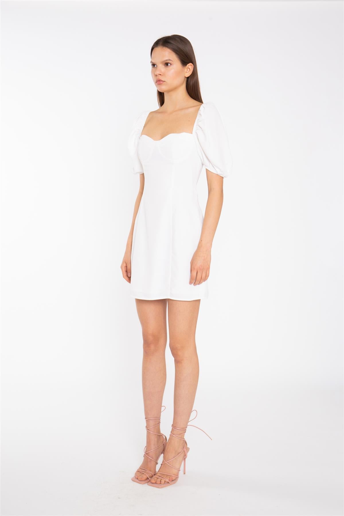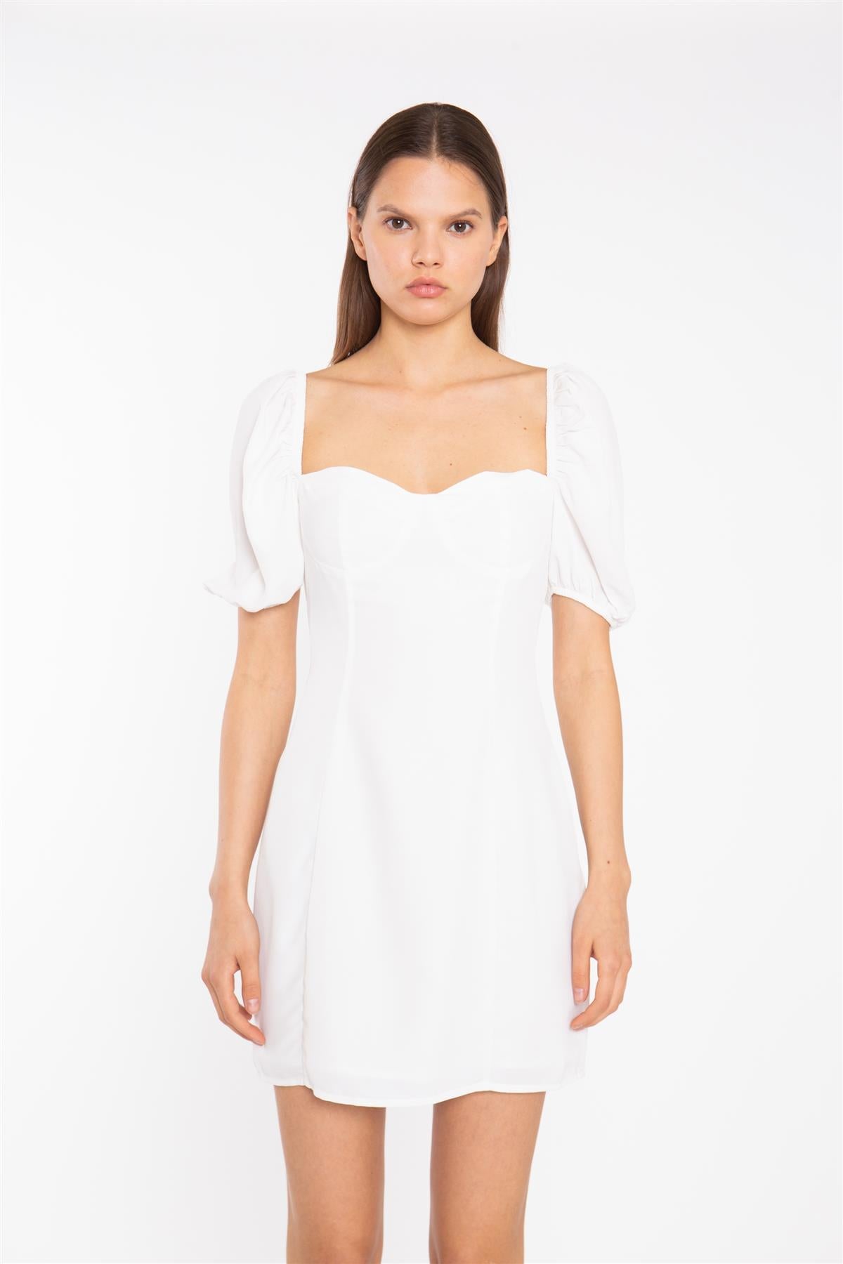 Glamorous Women's Off-White Bust Cup Mini-Dress. The perfect mini-dress for day to night, this Off-White Bust Cup Mini-Dress features a tailored fit and stylish puff sleeves. The bust cup detail adds a touch of elegance to the modern design. Look and feel fabulous in this must-have dress. Dress this up or down with a quick change of shoes, it will not let you down!