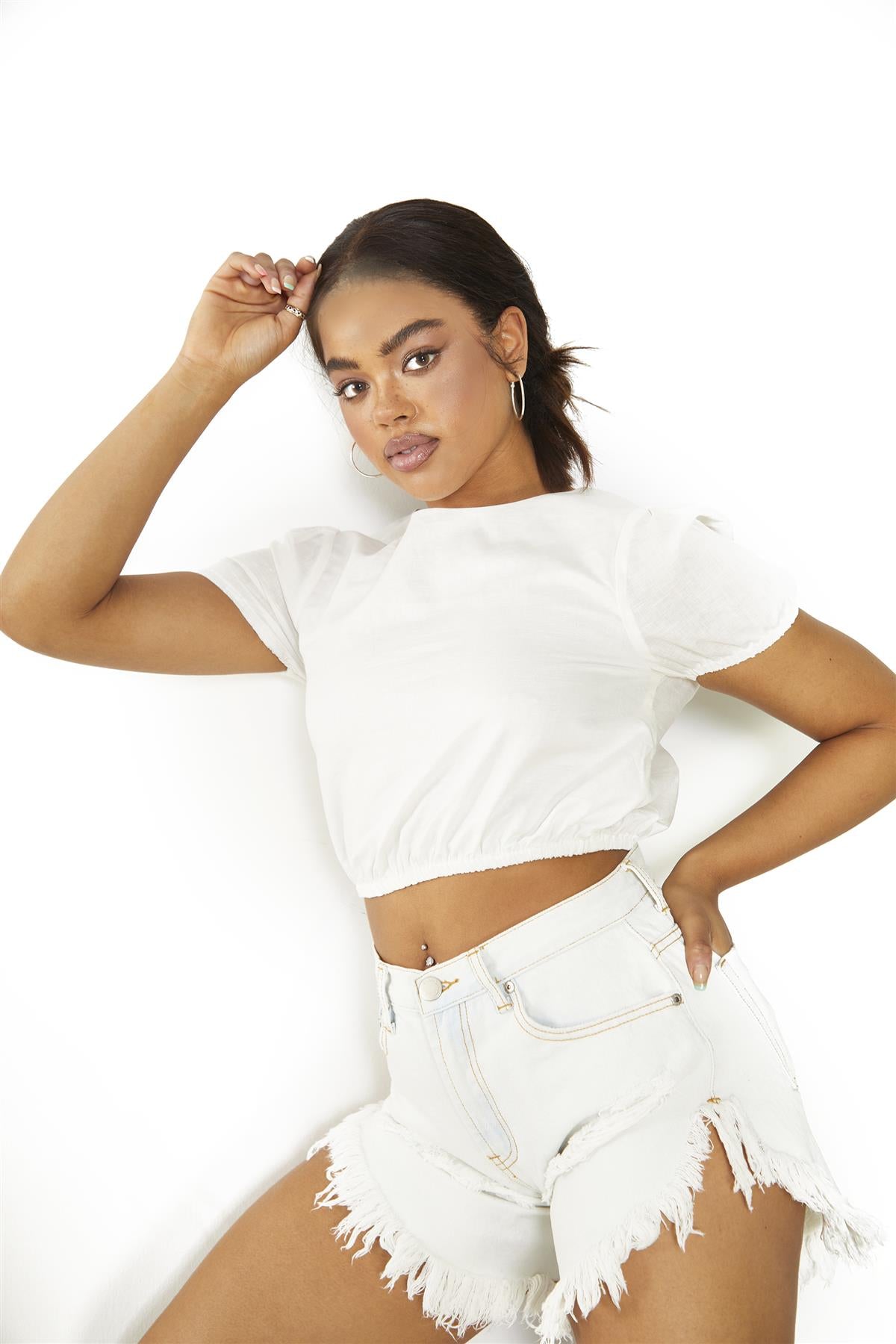 Glamorous Women's Off-White Crew-Neck Crop-Top. This off-white crew-neck crop top is a versatile staple that'll quickly become your go-to for effortless style. The elasticated design ensures a snug, comfortable fit that moves with you throughout the day. Short sleeves make it perfect for warmer weather or layering under jackets when the temperature drops. The classic crew neck keeps things simple and timeless, while the cropped length adds a modern touch. Pair it with high-waisted jeans for a casual look, or dress it up with a sleek skirt for a night out. The neutral off-white colour makes it easy to mix and match with your favourite bottoms and accessories. This top is ideal for those days when you want to look put-together without any fuss – just throw it on and you're ready to tackle whatever the day brings.