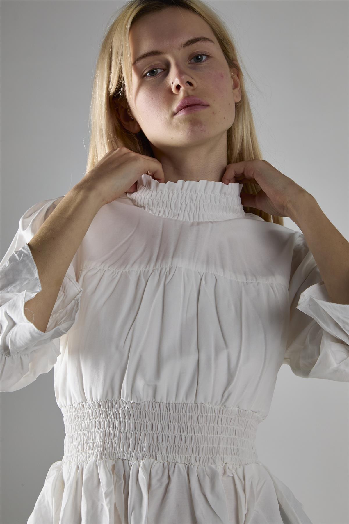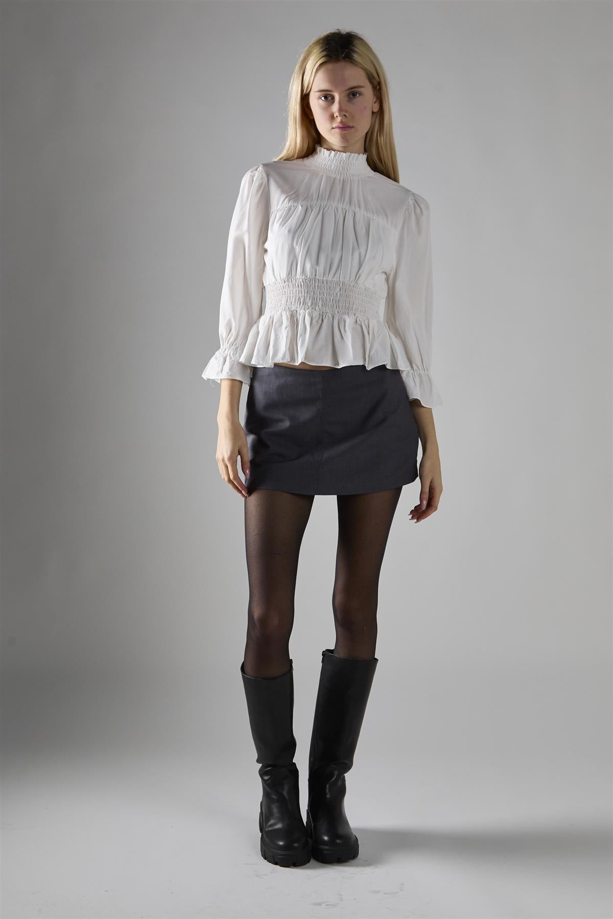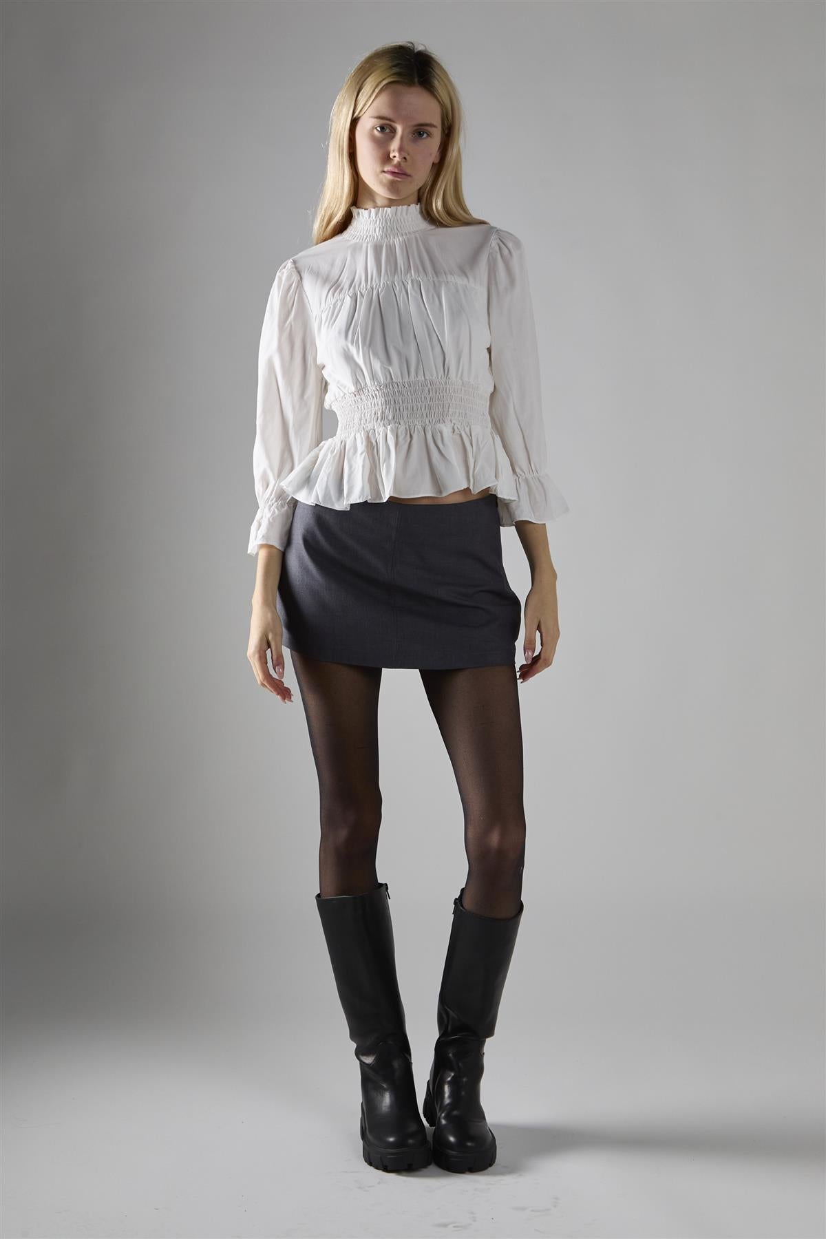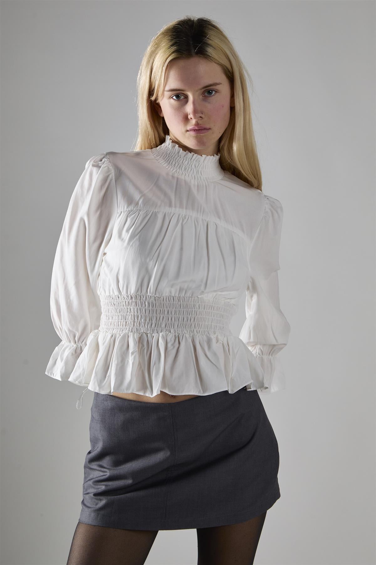 Glamorous Women's Off White High Neck Crop-Top. This high-neck crop-top is a delightful blend of comfort and style that'll quickly become your go-to piece for any occasion. The long sleeves offer just the right amount of coverage, making it perfect for those in-between weather days or air-conditioned environments. The shirred waist adds a flattering touch, hugging your curves in all the right places while still allowing for easy movement. But the real star of the show? The pleated detailing that adds a touch of romance and whimsy to this otherwise simple top. It's the kind of piece that effortlessly transitions from day to night - pair it with your favourite jeans for a casual lunch date, or dress it up with a sleek skirt for an evening out. The crop length hits just right, giving you the option to show a little skin or layer over high-waisted bottoms. This top doesn't just look good; it feels good too, with fabric that's soft against your skin and easy to care for. So go ahead, make this your new favourite top - it's ready to make you feel confident and stylish, no matter where your day takes you.