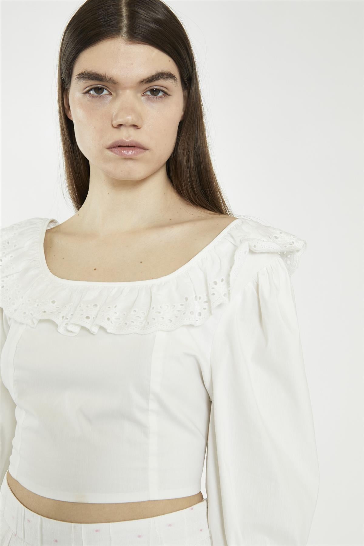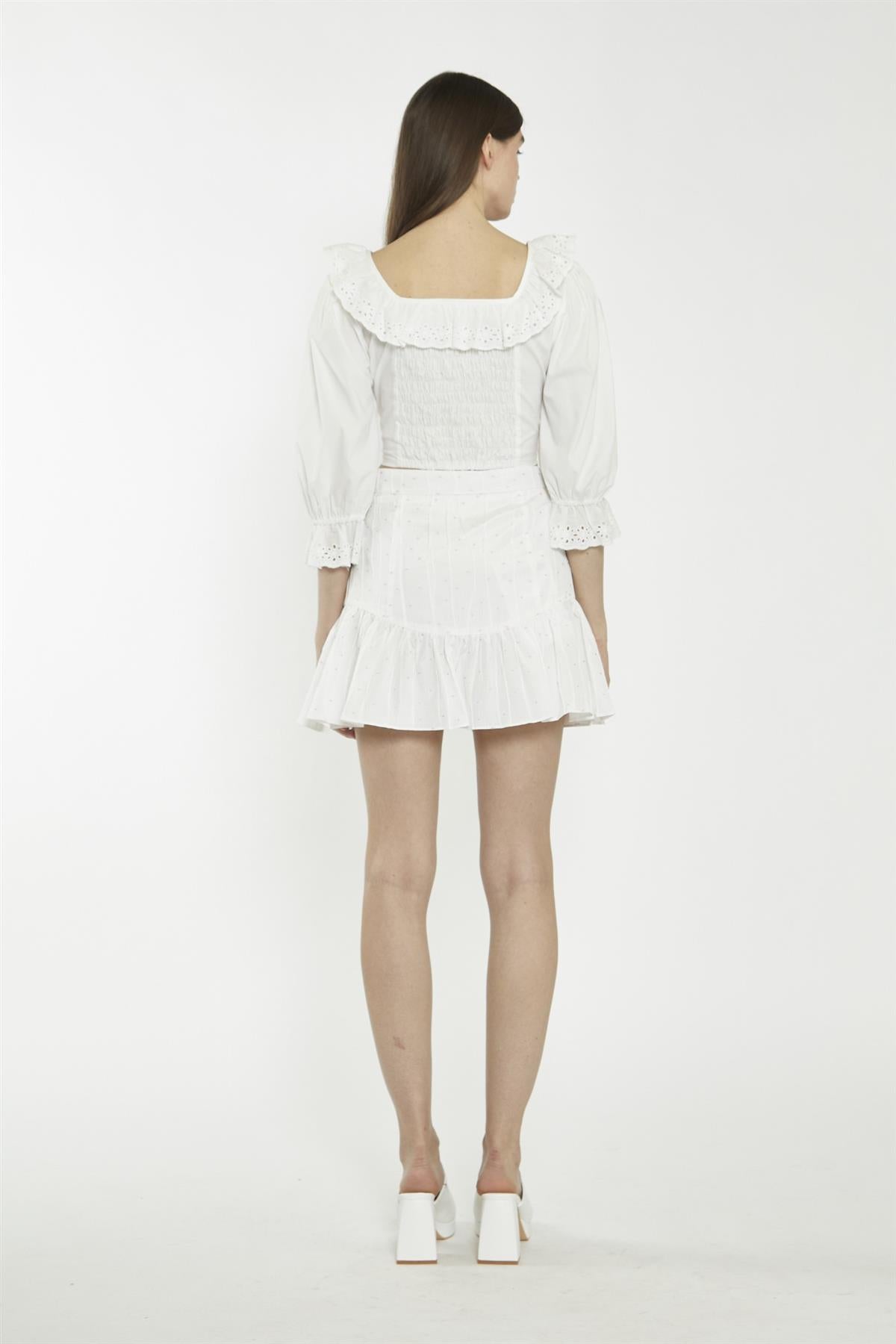 Glamorous Women's Off White Lace Frill Crop-Top. This charming crop top is a delightful blend of sweet and sassy. The square neckline frames your décolletage beautifully, while the 3/4 sleeves offer just the right amount of coverage. Delicate lace trim detailing adds a touch of romance, creating a feminine and flirty vibe. The frilly design brings movement and texture to the top, making it perfect for those who love a bit of whimsy in their wardrobe. It's a versatile piece that can easily transition from day to night - pair it with high-waisted jeans for a casual lunch date, or dress it up with the matching skirt for a coordinated look that's sure to turn heads at your next event. The crop length is just right, showing a hint of skin without being too revealing. This top is ideal for warm weather, but can also be layered under a cardigan or jacket when the temperature drops. It's the kind of piece that makes you feel instantly pretty and put-together, no matter how you style it.