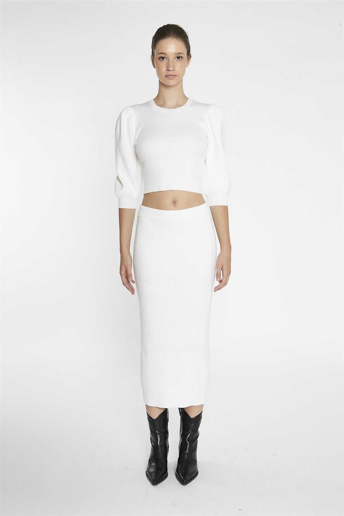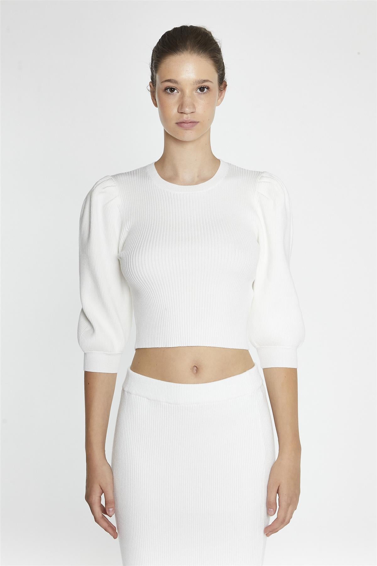 Glamorous Women's Off-White Puff-Sleeve Crop-Jumper. This off-white puff-sleeve crop jumper is one of those easy favourites you’ll keep reaching for. Made from ribbed material, it gives you a bit of structure without feeling too heavy, and the quarter-length puff sleeves add just the right touch of shape and softness. The round neckline keeps it classic, making it simple to layer over a dress or style with high-waisted trousers for a more pulled-together feel. The cropped length works well with longer layers or matching ribbed bottoms if you're into a coordinated look. It’s the kind of piece that feels playful but still easygoing—something you can throw on and instantly feel a little more put-together without overthinking it.