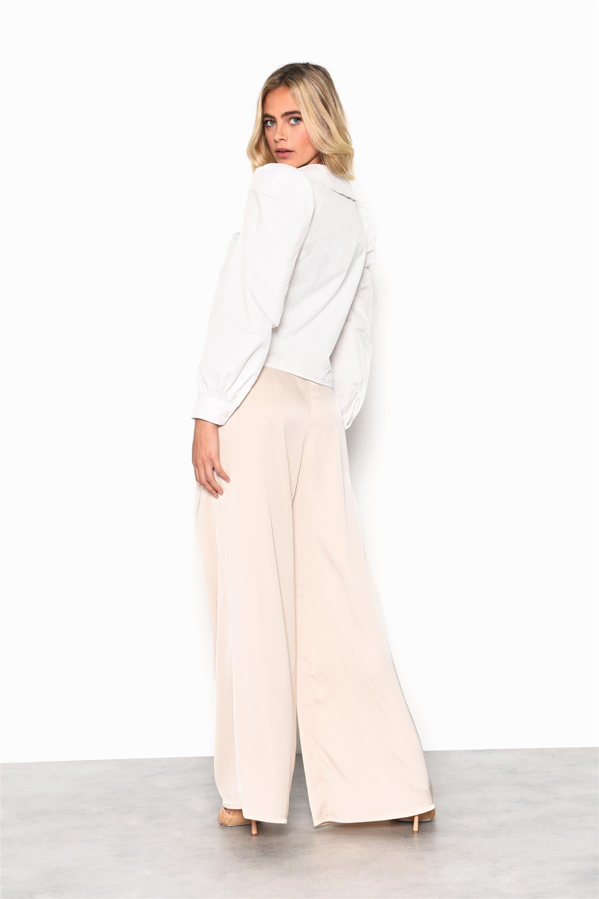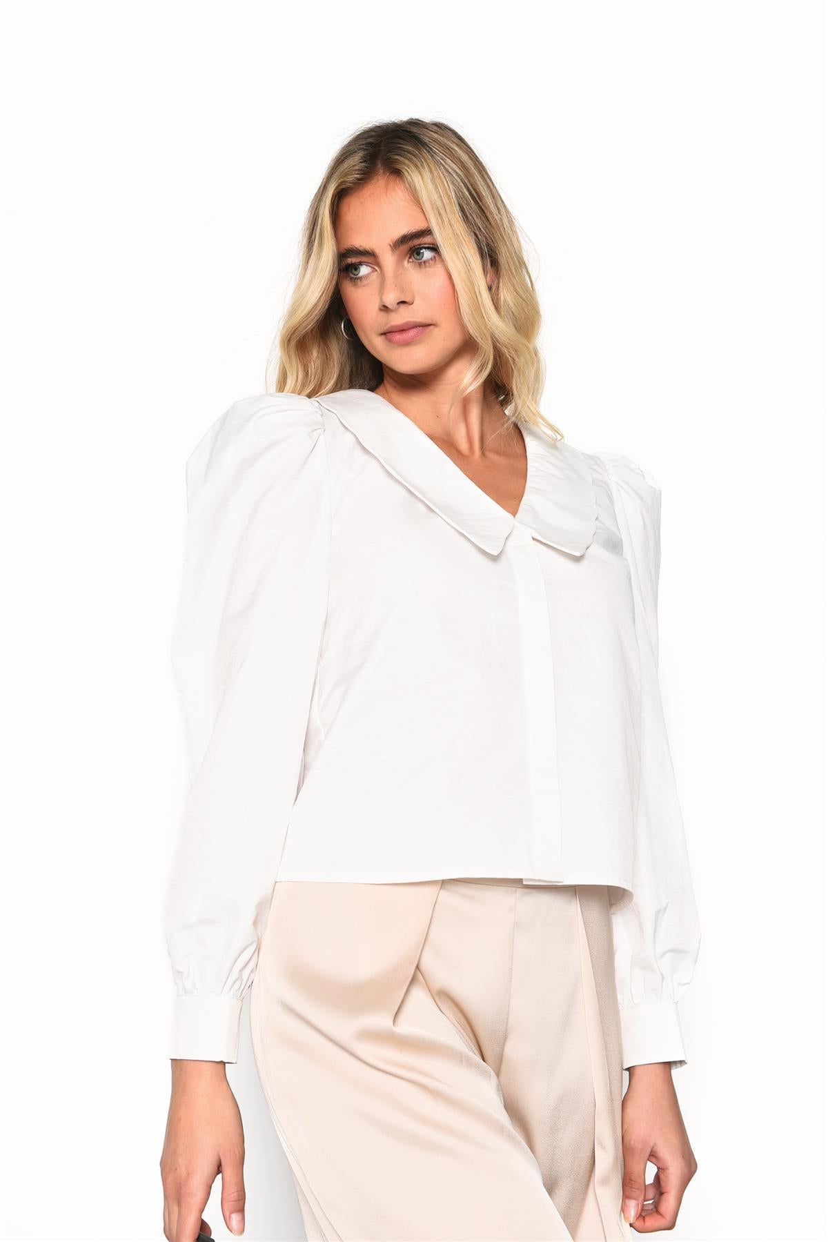 Glamorous Women's Off-White Statement Sleeves -Blouse. This black blouse with statement sleeves is a showstopper that combines classic elegance with a modern twist. The eye-catching sleeves add drama and flair to your outfit, making this piece perfect for those who love to make a fashion statement. A button-front design allows for easy wear and lets you adjust the neckline to your liking, while the collared detail adds a touch of sophistication. The versatile black colour ensures this blouse will pair well with various bottoms in your wardrobe. Dress it up with tailored trousers and heels for a chic office look, or go casual with your favourite jeans and sneakers for a stylish weekend ensemble. The unique sleeve design eliminates the need for extra accessories, making this blouse a one-and-done solution for those days when you want to look put-together with minimal effort. It's a piece that effortlessly balances boldness and versatility, sure to become a favourite in your clothing rotation.
