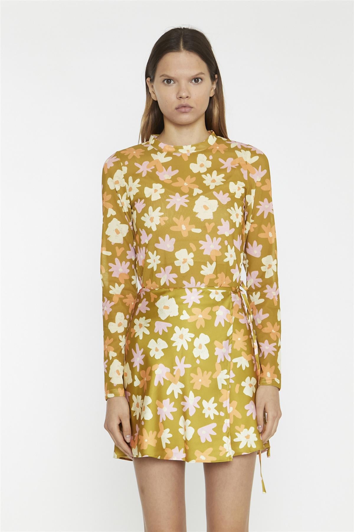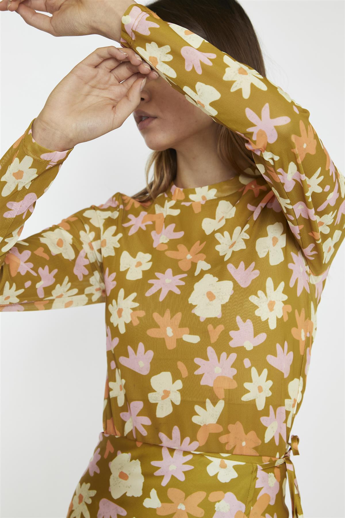 Glamorous Women's Olive Multi Flower Mesh Floral Long Sleeve-Top. This delightful long-sleeve top is a breath of fresh air for your wardrobe, bringing a touch of nature's beauty to your everyday style. The multi-flower mesh design creates a dreamy, ethereal look that's perfect for those who love to stand out. With its crew neck, this top offers a classic silhouette that's both comfortable and flattering. The long sleeves make it versatile for different seasons, allowing you to layer it up or wear it on its own. The floral pattern dances across the mesh fabric, creating a playful and romantic vibe that's sure to turn heads. For a coordinated look that's ready in seconds, pair it with the matching skirt - it's an effortless outfit that's perfect for garden parties or brunch dates. Alternatively, mix it up with your favourite jeans or a solid-coloured skirt for a more casual feel. This top is all about versatility and comfort, making it easy to express your unique style while feeling at ease. It's the kind of piece that brings a smile to your face every time you wear it, adding a touch of whimsy to any outfit.