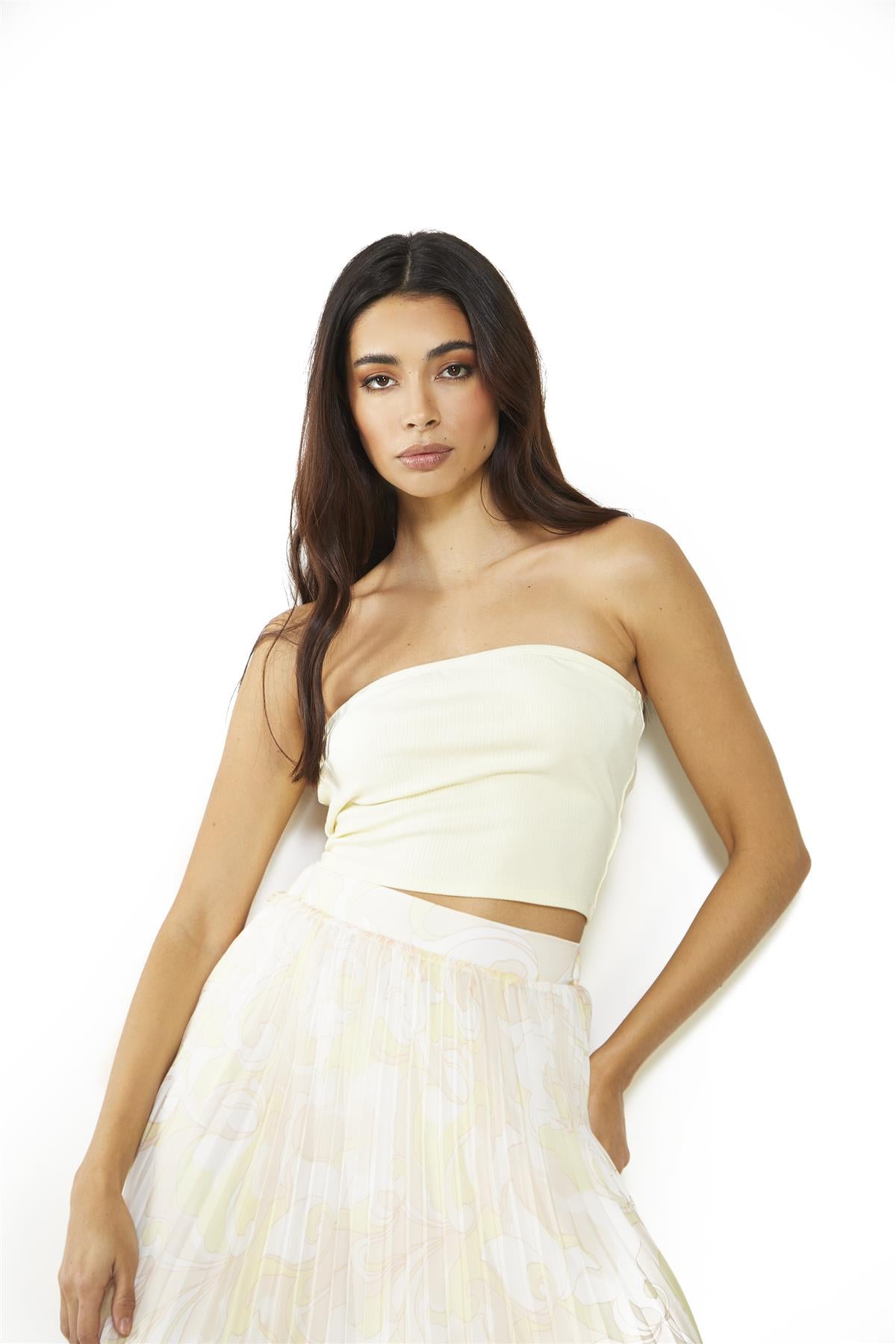 Glamorous Women's Pale-Lemon Ribbed-Bandeau Crop-Top. This pale-lemon ribbed bandeau crop top brings an easy, sunny feel with a shape that’s simple and reliable. The ribbed texture adds just enough detail to keep things interesting, while the strapless cut keeps the look clean and minimal. It’s held in place with a flexible, elasticated waistband that offers a secure fit without feeling tight or restrictive. Soft and stretchy, it moves with you and works well on its own or layered under an open shirt, blazer, or lightweight jacket. Pair it with relaxed denim, linen shorts, or a matching ribbed skirt if you’ve got one—it’s made for easy combinations and laid-back days when comfort is at the top of your list.
