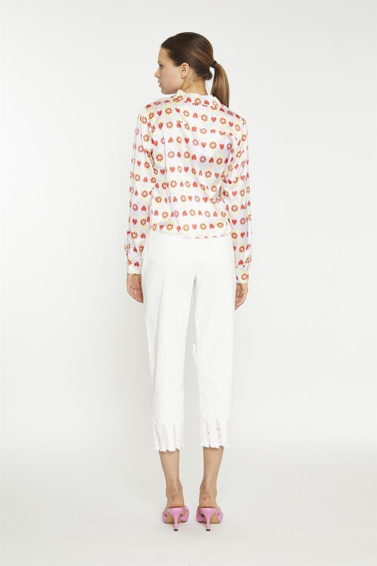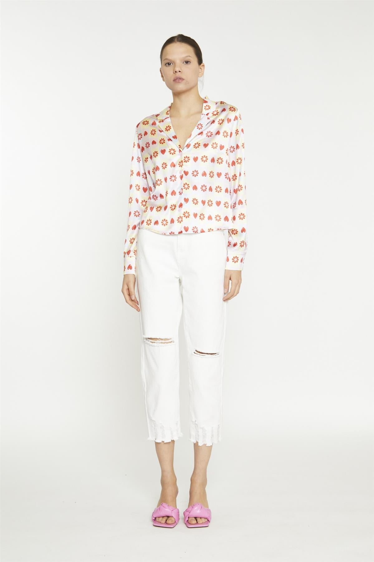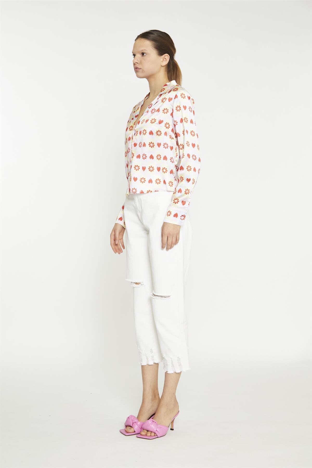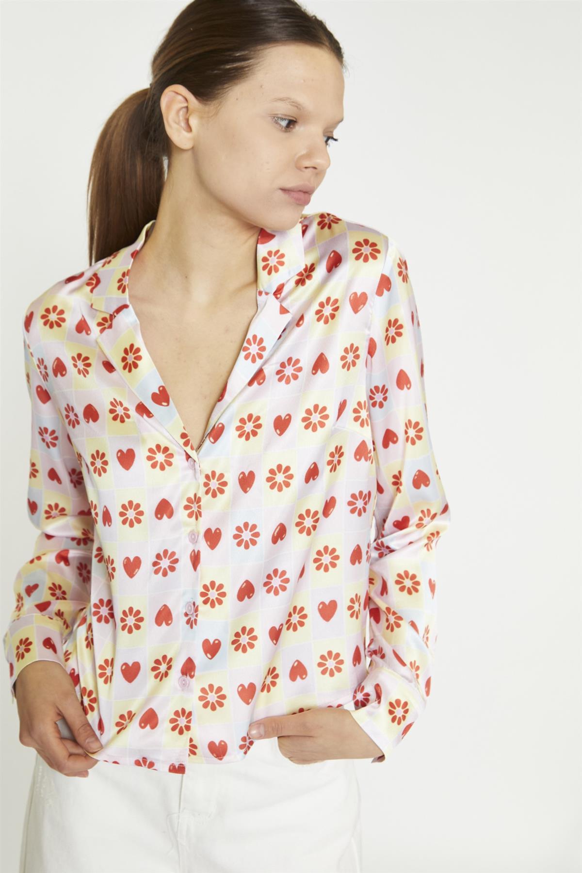 Glamorous Women's Pastel Tile Print Floral Button-Up Crop-Top. This charming crop top is a delightful mix of playful and chic, perfect for adding a pop of personality to your wardrobe. The pastel tile print creates a unique and eye-catching design that's sure to turn heads. With its collared neckline and button-front closure, it offers a classic look with a modern twist. The long sleeves make it versatile for different seasons, while the cropped length adds a touch of flirty fun. Floral buttons sprinkle an extra dose of whimsy throughout, making this top truly one-of-a-kind. It's the kind of piece that effortlessly transitions from casual daytime outings to evening gatherings. Pair it with high-waisted jeans for a relaxed weekend look, or dress it up with a sleek skirt for a night out. The soft fabric ensures comfort all day long, so you can focus on feeling fabulous. This crop top is bound to become your go-to choice for those days when you want to feel both comfortable and stylish.