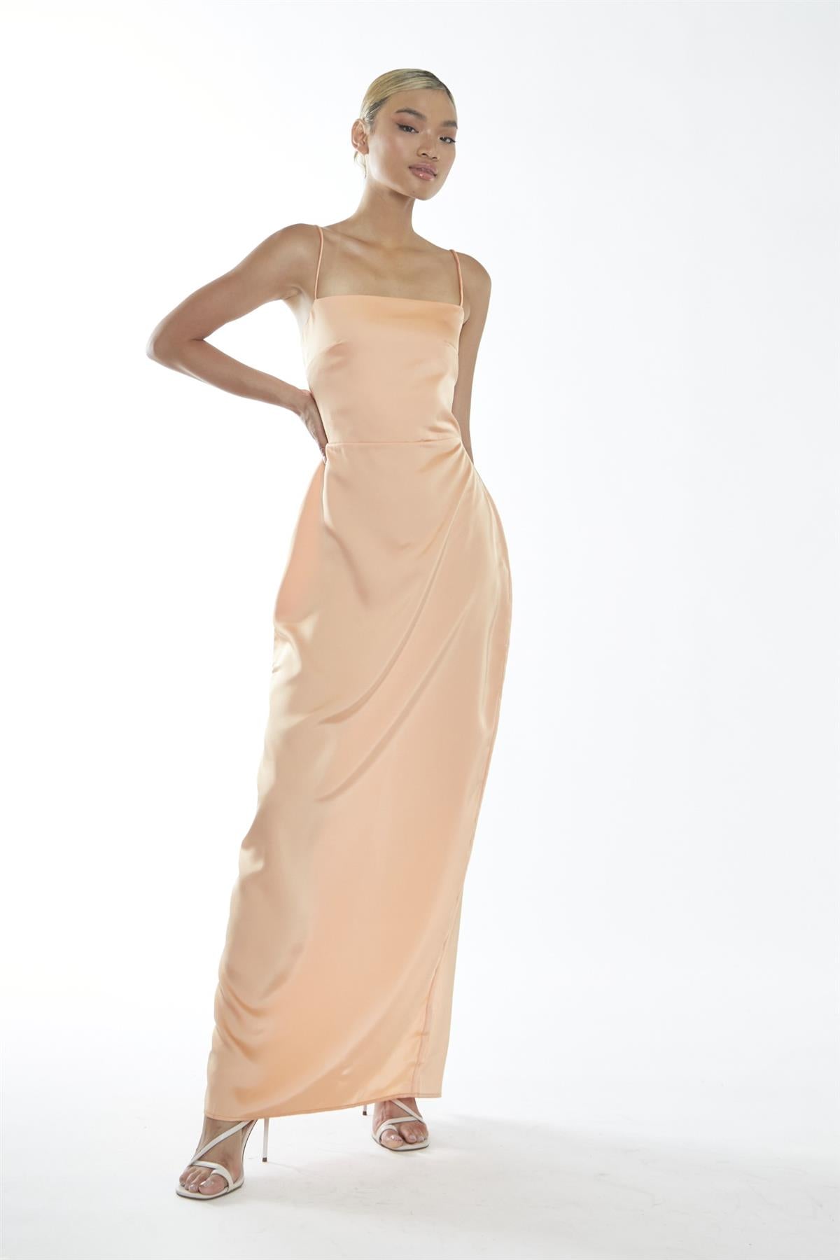 Glamorous Studio Women's Peach Spaghetti Strap Maxi-Dress. This dreamy maxi dress is all about effortless elegance and comfort. With its spaghetti straps and sleeveless design, it’s lightweight and perfect for warmer days or layering with a cozy cardigan on cooler evenings. The leg split adds a playful touch, giving you freedom to move while adding a bit of flair to the flowing silhouette. The concealed zip fastening at the back keeps the look sleek and polished, making it easy to wear without taking away from the dress's clean lines. Pair it with sandals for a relaxed daytime vibe or dress it up with heels and delicate jewellery for a special occasion. The soft fabric drapes beautifully, making this dress as comfortable as it is stunning. It’s one of those pieces that feels just right for everything from casual strolls to elegant dinners.