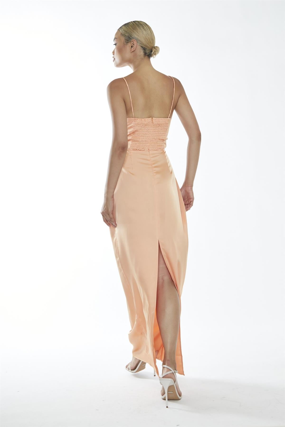 Glamorous Studio Women's Peach Spaghetti Strap Maxi-Dress. This dreamy maxi dress is all about effortless elegance and comfort. With its spaghetti straps and sleeveless design, it’s lightweight and perfect for warmer days or layering with a cozy cardigan on cooler evenings. The leg split adds a playful touch, giving you freedom to move while adding a bit of flair to the flowing silhouette. The concealed zip fastening at the back keeps the look sleek and polished, making it easy to wear without taking away from the dress's clean lines. Pair it with sandals for a relaxed daytime vibe or dress it up with heels and delicate jewellery for a special occasion. The soft fabric drapes beautifully, making this dress as comfortable as it is stunning. It’s one of those pieces that feels just right for everything from casual strolls to elegant dinners.