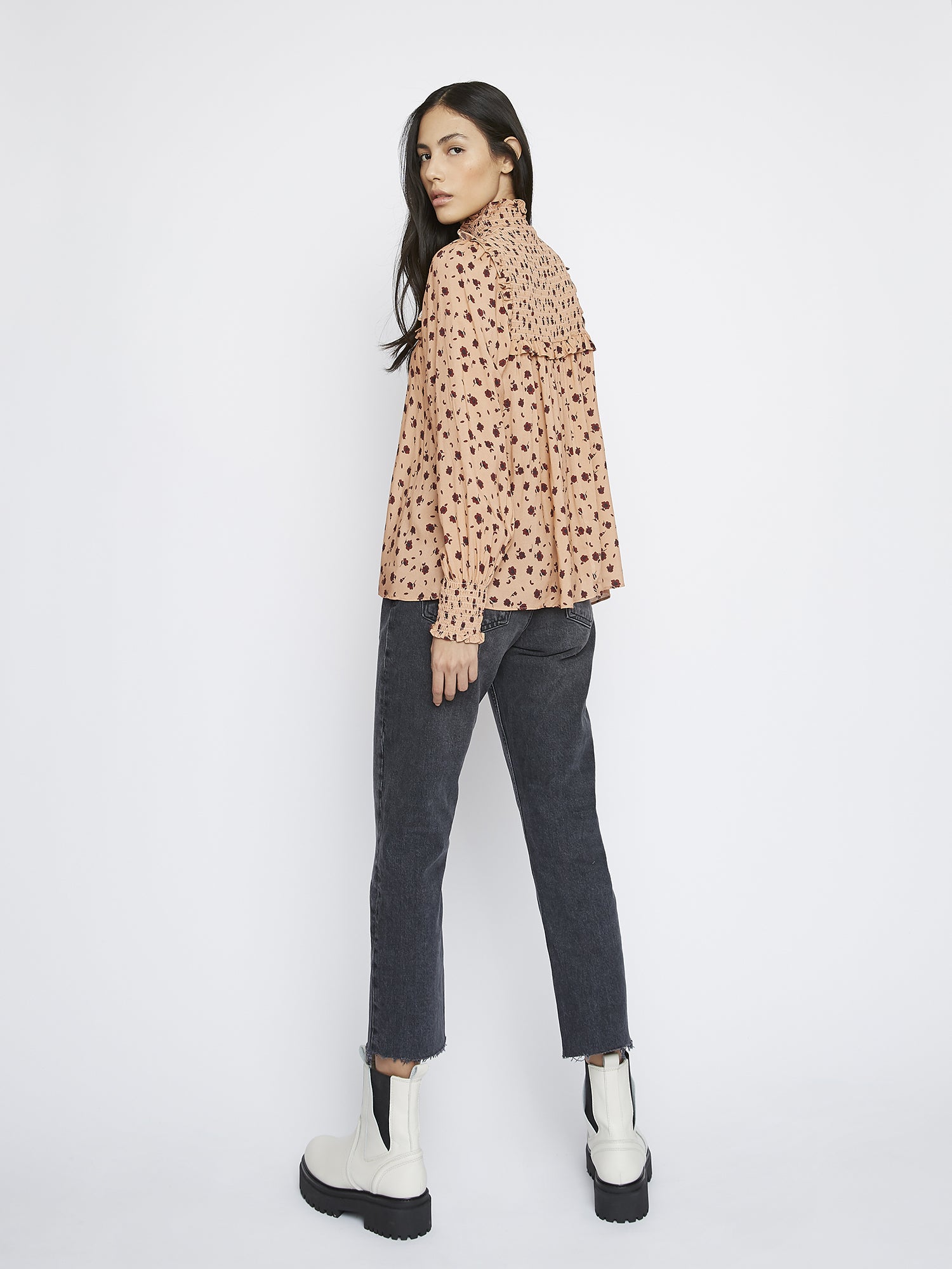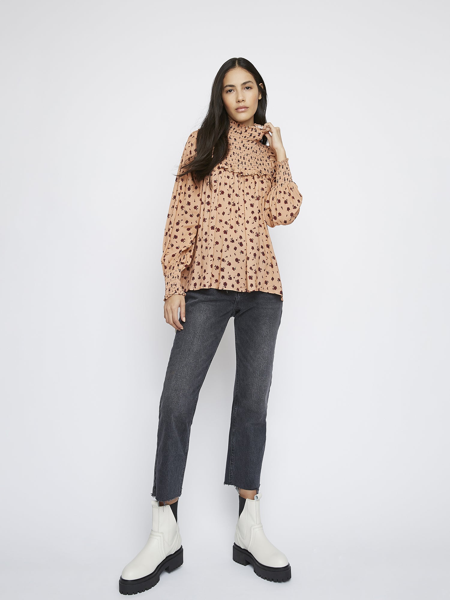 Glamorous Womens Peach Spotted Long Sleeve Blouse. This piece is providing you with all you could want this season. Ruffled High neck detail you wont fail to impress in this flattering blouse. Pair this with some black jeans and boots for an great outfit.