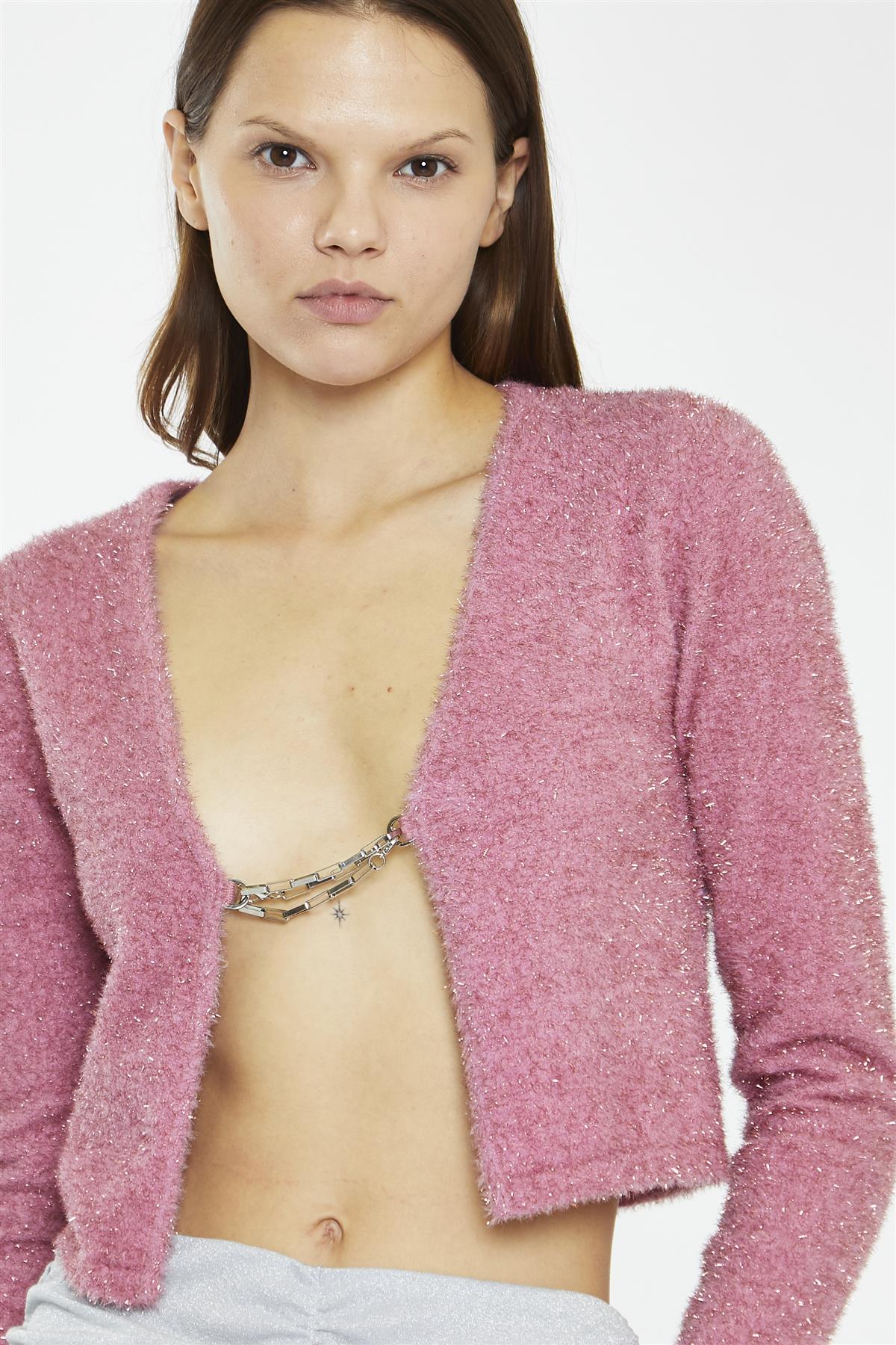 Glamorous Women's Pink Tinsel Long-Sleeve Crop-Top. Add a little sparkle to your wardrobe with this pink tinsel long-sleeve crop top. The shimmering fabric catches the light beautifully, making it a fun choice for parties or nights out. The cropped length pairs perfectly with high-waisted jeans, skirts, or trousers, giving you plenty of styling options. Long sleeves balance the playful vibe with a touch of elegance, making it great for cooler evenings. The bold pink colour and glittery finish make this top a standout piece that’s sure to turn heads. Dress it up with statement earrings and heels for a festive look, or keep it casual with sneakers and your favourite denim. It’s a versatile piece that brings a little extra shine to any outfit.