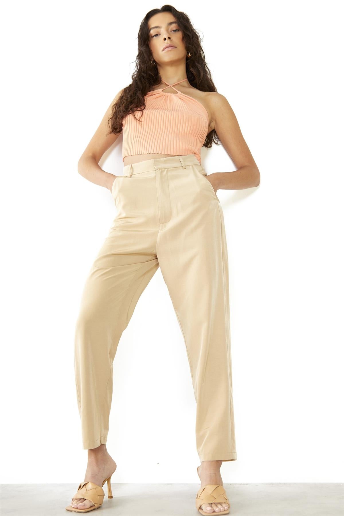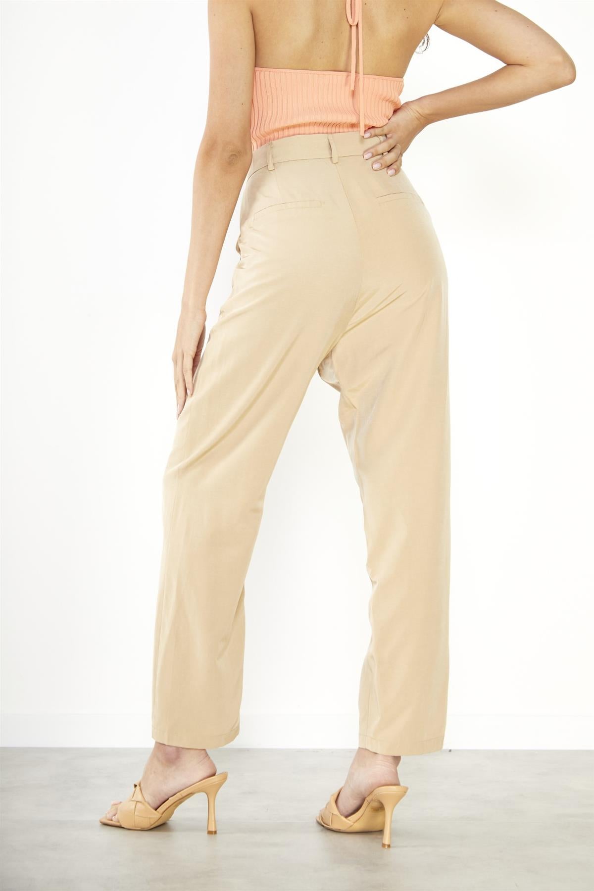 Glamorous Studio Women's Rich Sand High Waisted 0-Trousers. These high-waisted trousers are a wardrobe essential that combines comfort with timeless style. The rich, earthy tone adds warmth to your outfit, making these pants perfect for both casual and semi-formal occasions. Designed with a modest approach, they offer a flattering fit that sits comfortably at your natural waist. The inclusion of belt loops gives you the option to accessorize and customize your look, while practical pockets add convenience to your day. These versatile trousers can easily transition from office to evening wear, pairing beautifully with a crisp button-down for a professional look or a silky blouse for a night out. The high-waisted design elongates your silhouette, creating a sleek and polished appearance. Crafted with attention to detail, these trousers are sure to become a go-to piece in your wardrobe, offering both style and functionality for various occasions throughout the year.