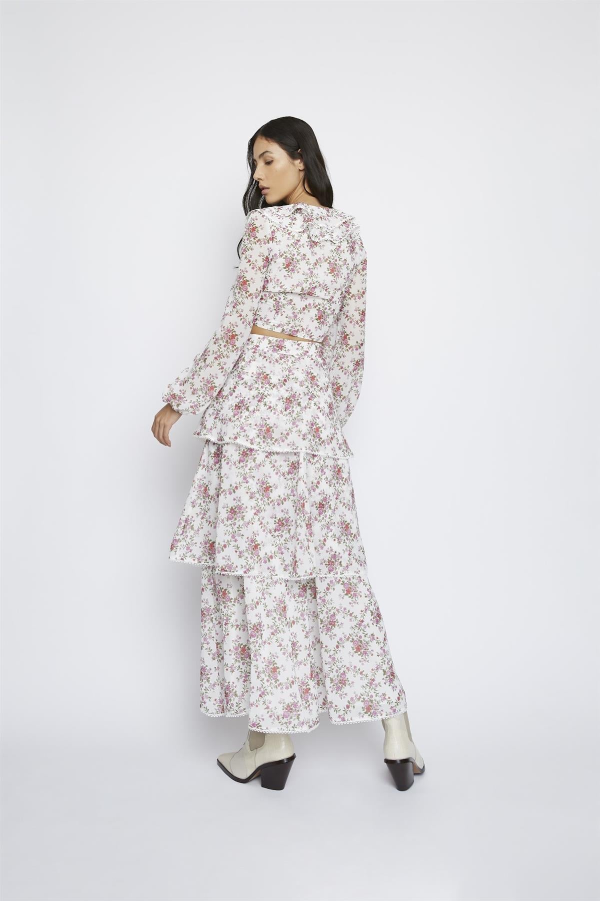 Romantic-Floral Chiffon Tiered Maxi-Skirt