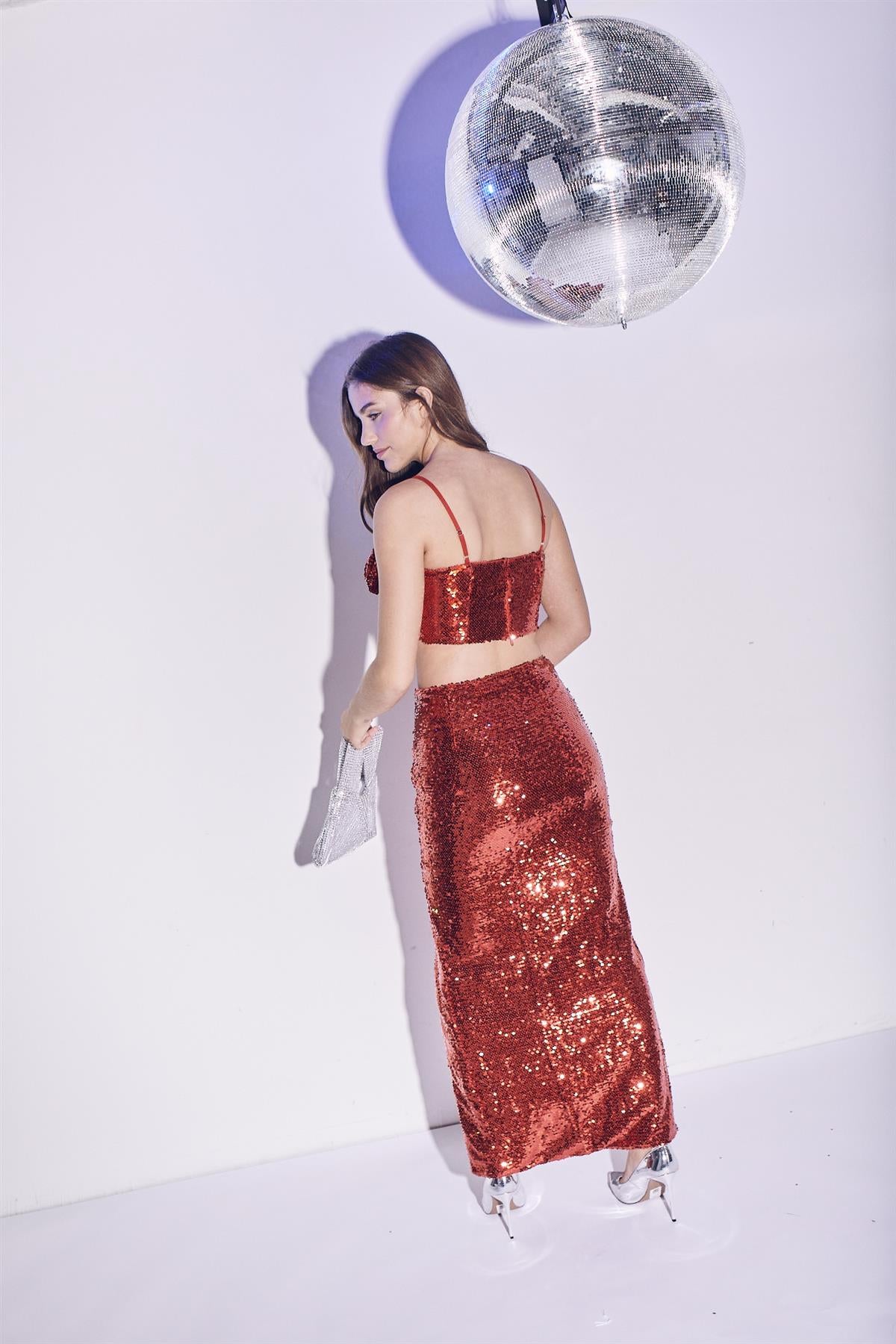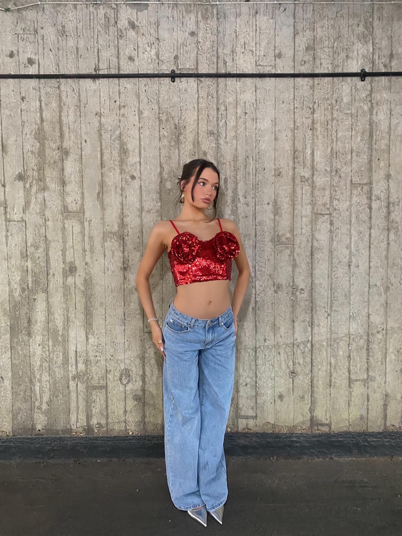 Rosa Co-ord Corsage Bust Crop Top - Deep Red