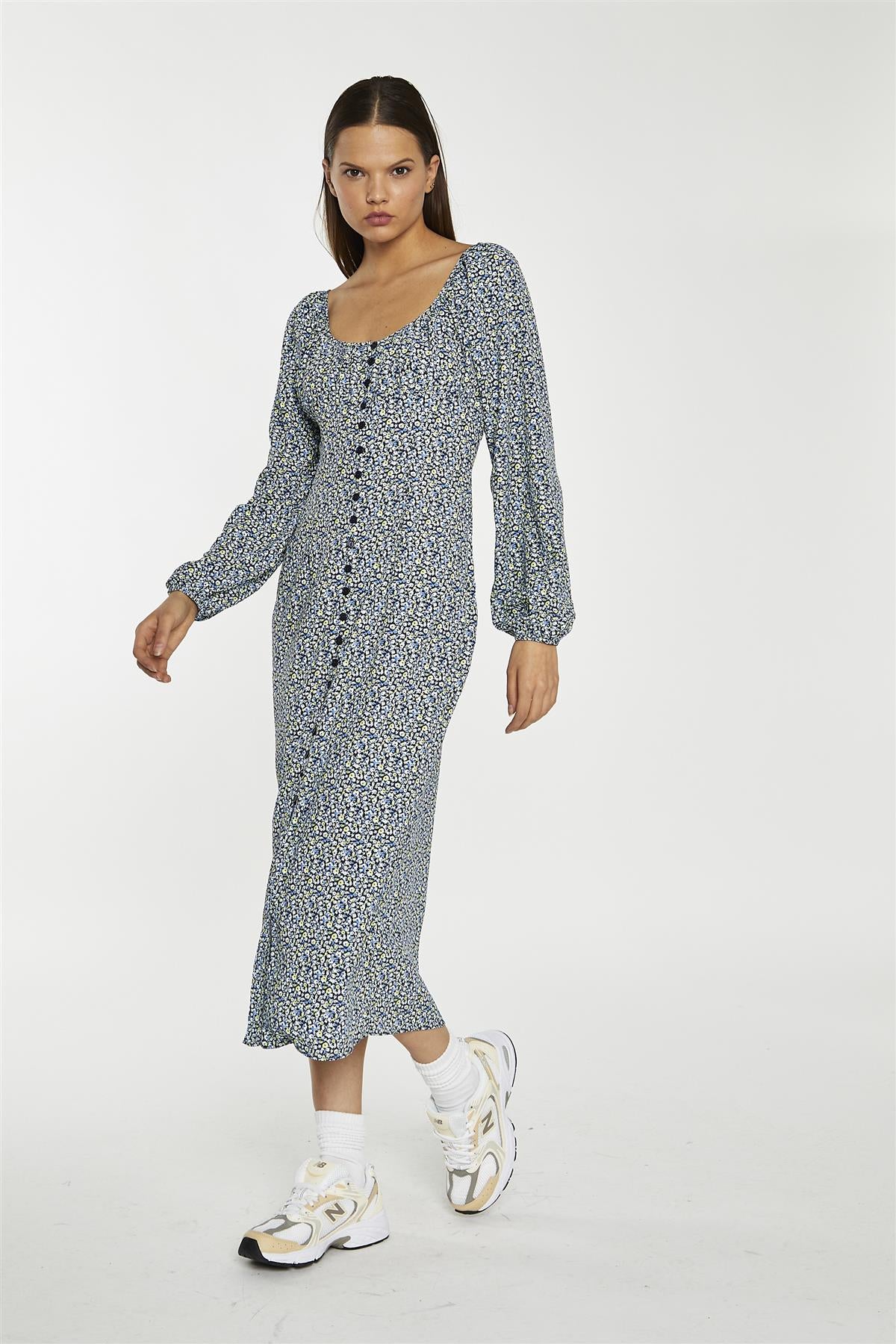 Scoop Neck Midaxi Dress - Blue Lime Ditsy