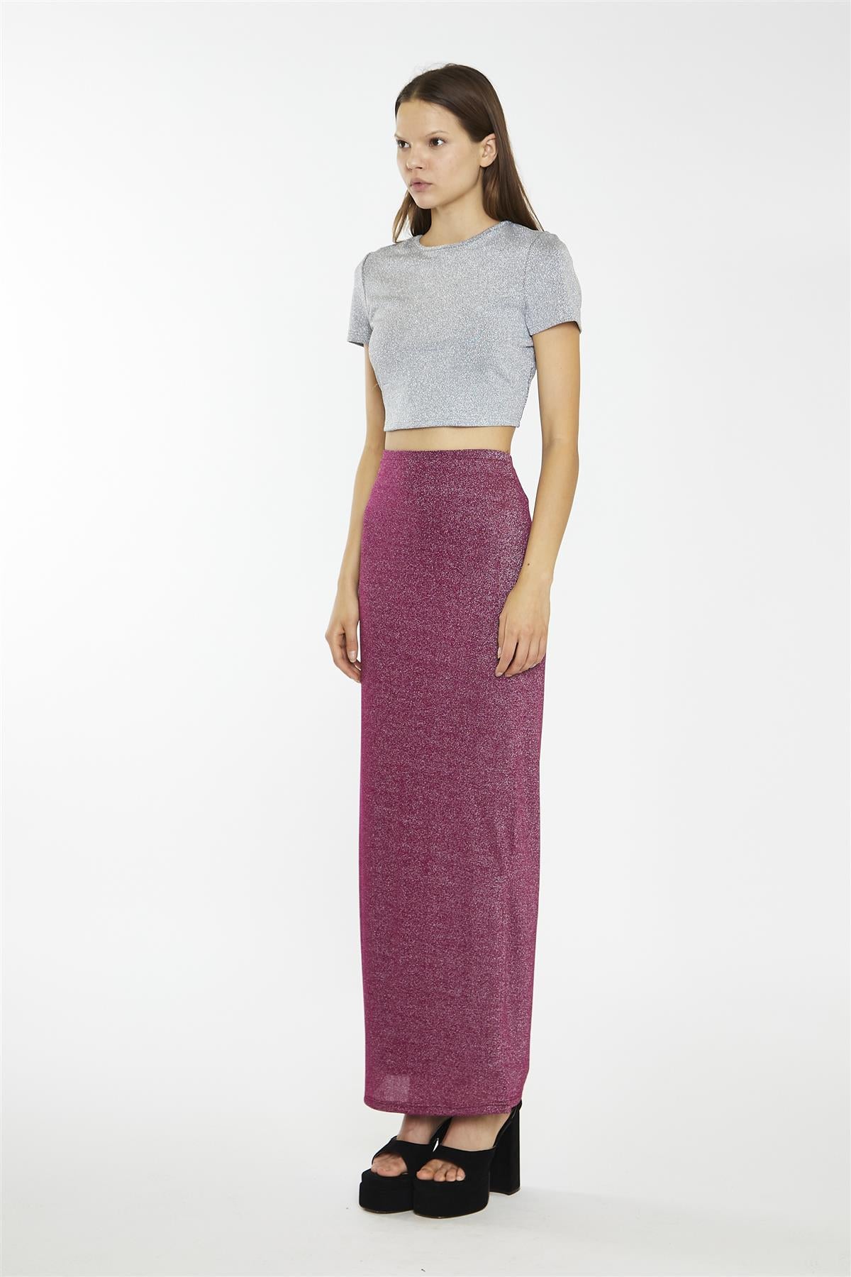 Glamorous Women's Silver-Glitter Open-Back Crop-top. Sparkle and shine in this dazzling silver-glitter open-back crop top. The short sleeves offer a comfortable fit while allowing you to show off a bit of skin, making it ideal for warm evenings or dance-filled nights. A round neckline keeps the front classic and versatile, while the open back adds an unexpected twist that's sure to turn heads. The tie-back feature lets you adjust the fit to your liking, ensuring both comfort and style. This top isn't just clothing; it's a mood-booster that brings instant glamour to any outfit. Pair it with high-waisted jeans for a casual-chic look, or team it with a sleek skirt for more formal occasions. The glittery fabric catches the light with every move, making you feel like a walking disco ball in the best way possible. It's the perfect choice for parties, nights out, or any time you want to add a touch of sparkle to your day. Let this crop top be your go-to piece for bringing fun and excitement to your wardrobe.
