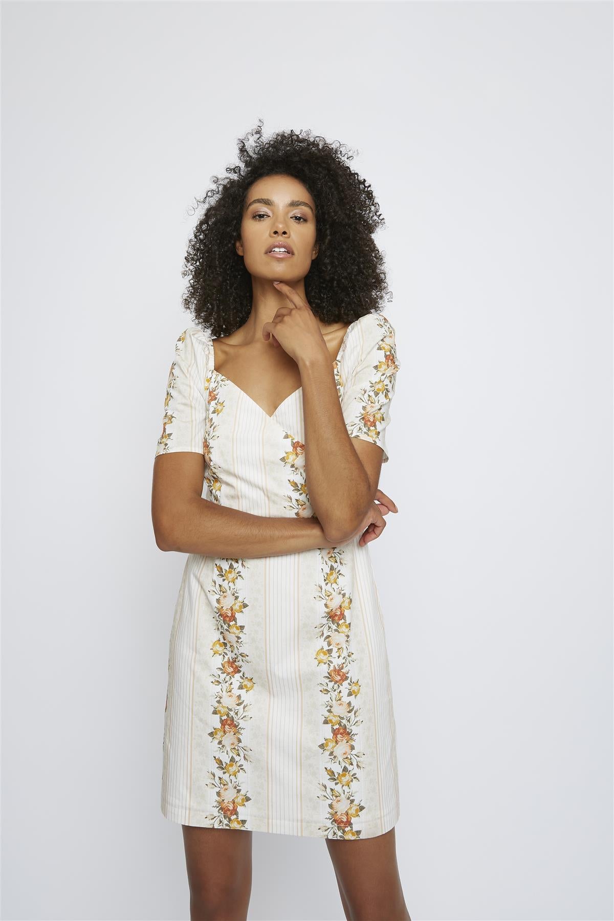 Stone Floral Stripe Sweetheart Neckline Mini-Dress