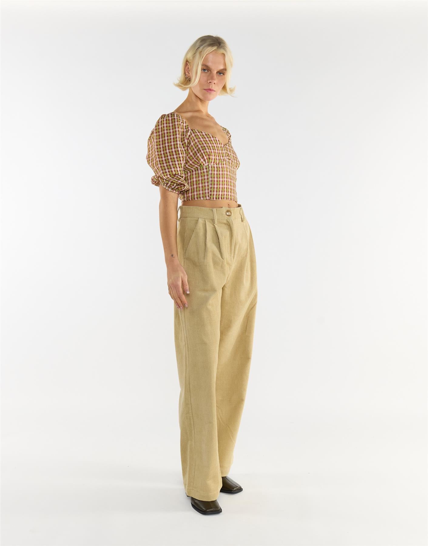 Sweetheart short sleeve Crop Top in Red Green Multi Check