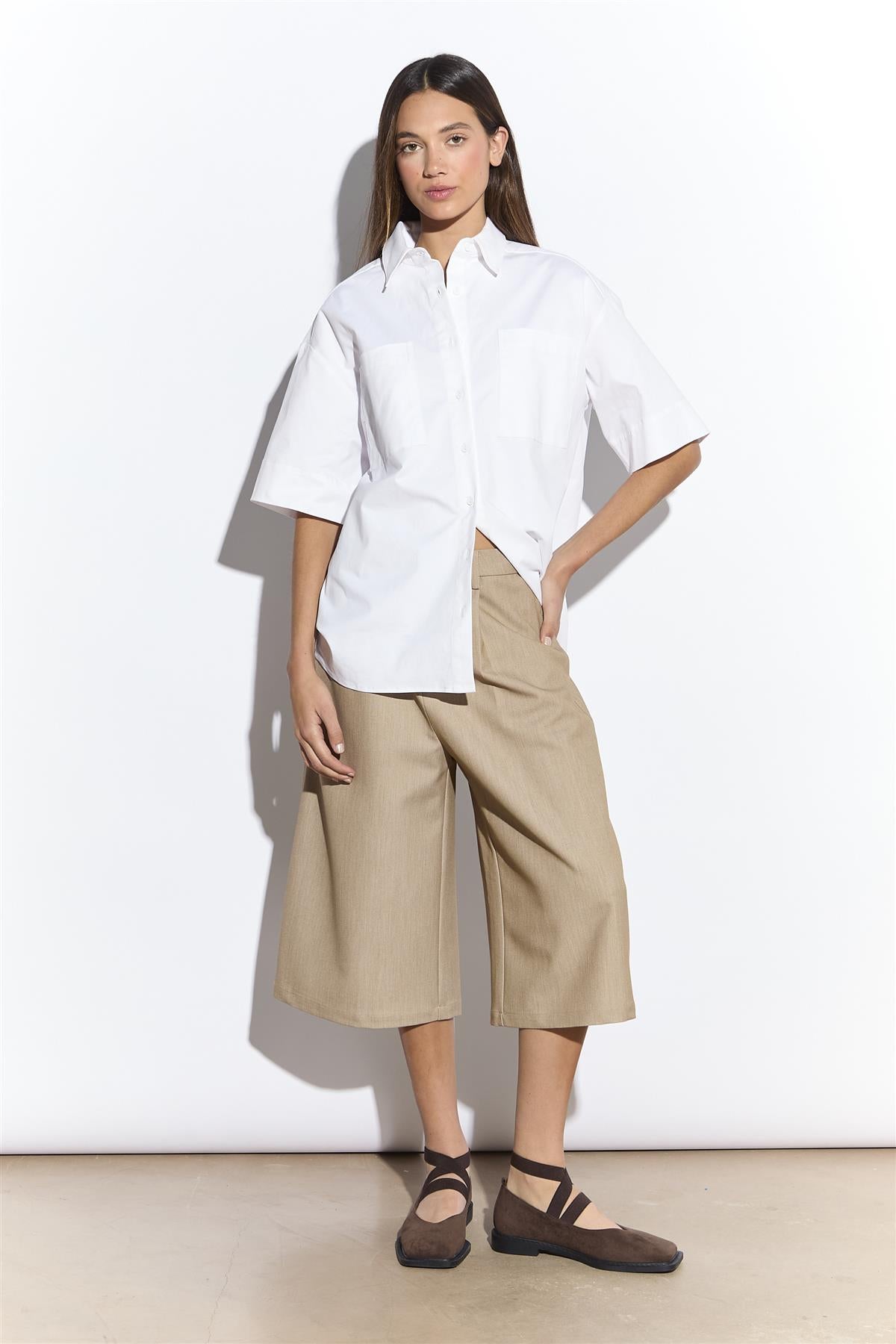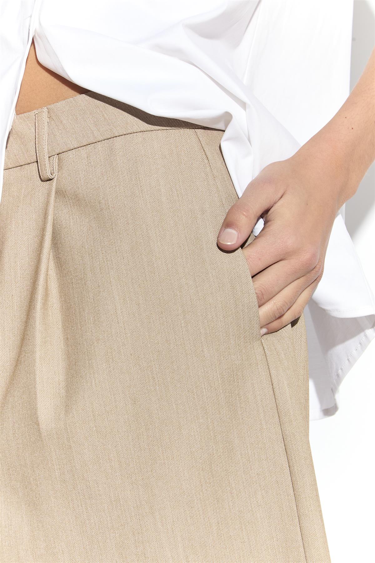 Narrated Women's Tailored Long Shorts In Sand Colour. Bring a polished, modern edge to your wardrobe with these tailored long shorts in sand, designed to balance comfort and sophistication effortlessly. The fixed waistband with belt loops ensures a secure, flattering fit while allowing you to accessorize with ease, and the fall-below-knee length creates a streamlined, versatile silhouette that works for both smart and casual occasions. With a contemporary feel, these shorts elevate everyday dressing without compromising ease of movement. Style with structured tops or tucked-in blouses for a chic, put-together look that feels modern and confident from morning to evening.