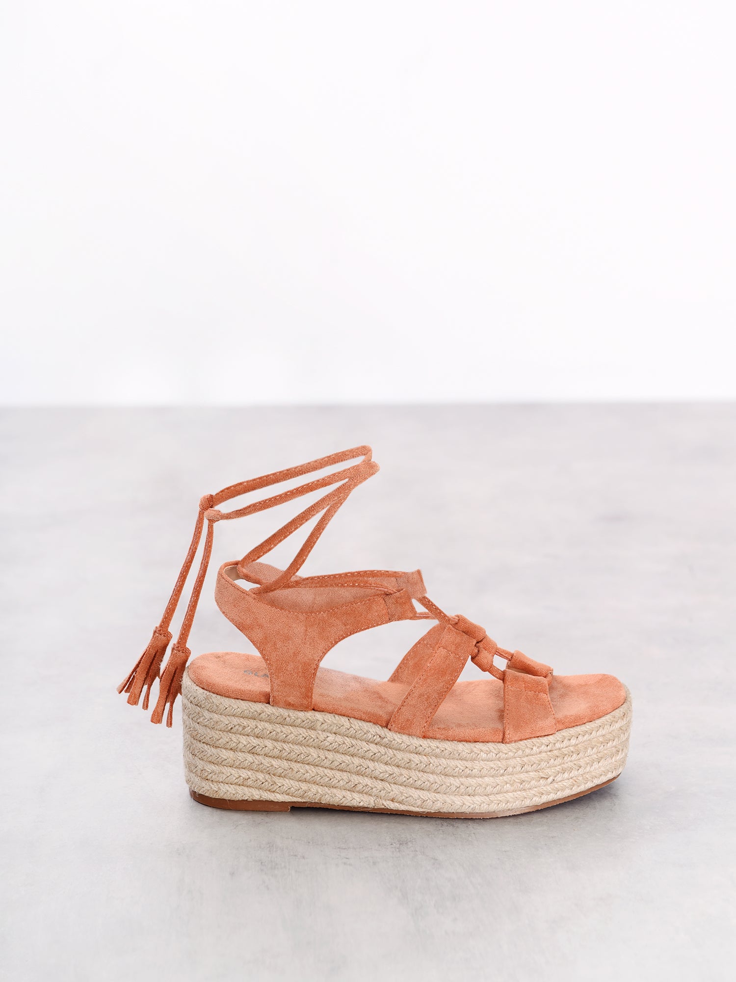 Glamorous Womens Tan Chunky Espadrille Flat Form Sandals. A must have for every holiday collection, these chunky espadrille sandals will go with everything in your wardrobe. Featuring strappy silhouette, lace up detail and chunky braided platform, dress up or down for any occasion. Looks great teamed with shorts and a cute top for a relaxed daytime look or styled with a statement dress for elevated evenings.