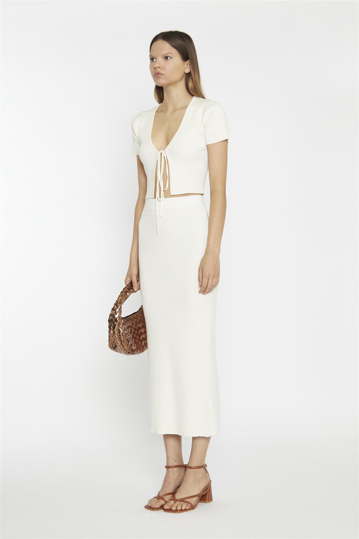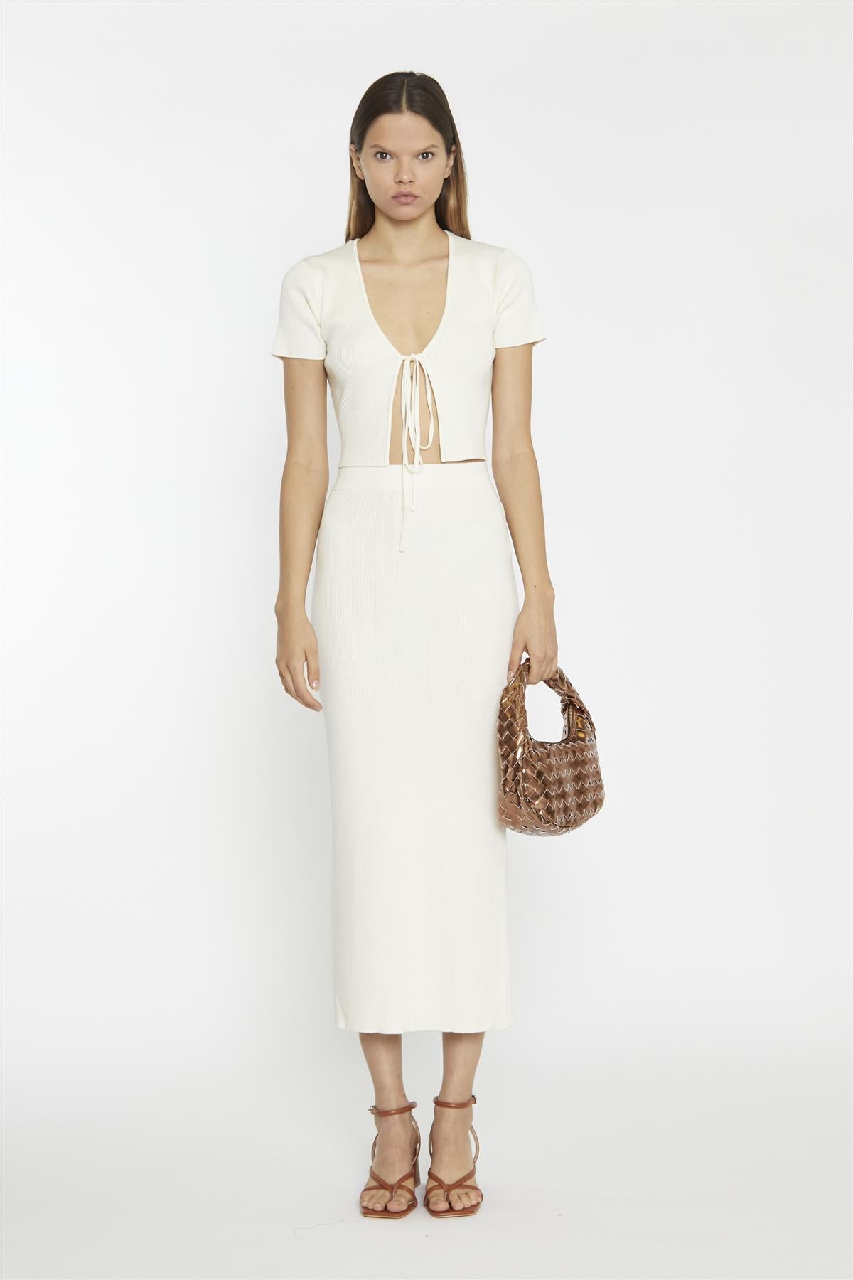 Glamorous Women's Vanilla Ribbed Tie-Front Crop-Top. This delightful crop top is a perfect blend of comfort and style. The ribbed texture adds a touch of interest while ensuring a snug, flattering fit. Its V-neck design frames your décolletage beautifully, adding a hint of allure to your look. The short sleeves offer just the right amount of coverage, making this top ideal for warm days or layering under a jacket. The playful tie-front detail allows you to adjust the fit to your liking, creating a customised silhouette that's uniquely yours. It's a versatile piece that can effortlessly transition from casual to dressy occasions. Pair it with the matching skirt for a coordinated ensemble that's sure to turn heads, or team it with your favourite jeans for a more relaxed vibe. The cropped length is just right, hitting at the perfect spot to flatter your waistline. This top is more than just an item of clothing - it's a mood-booster that brings a touch of sweetness to your wardrobe.