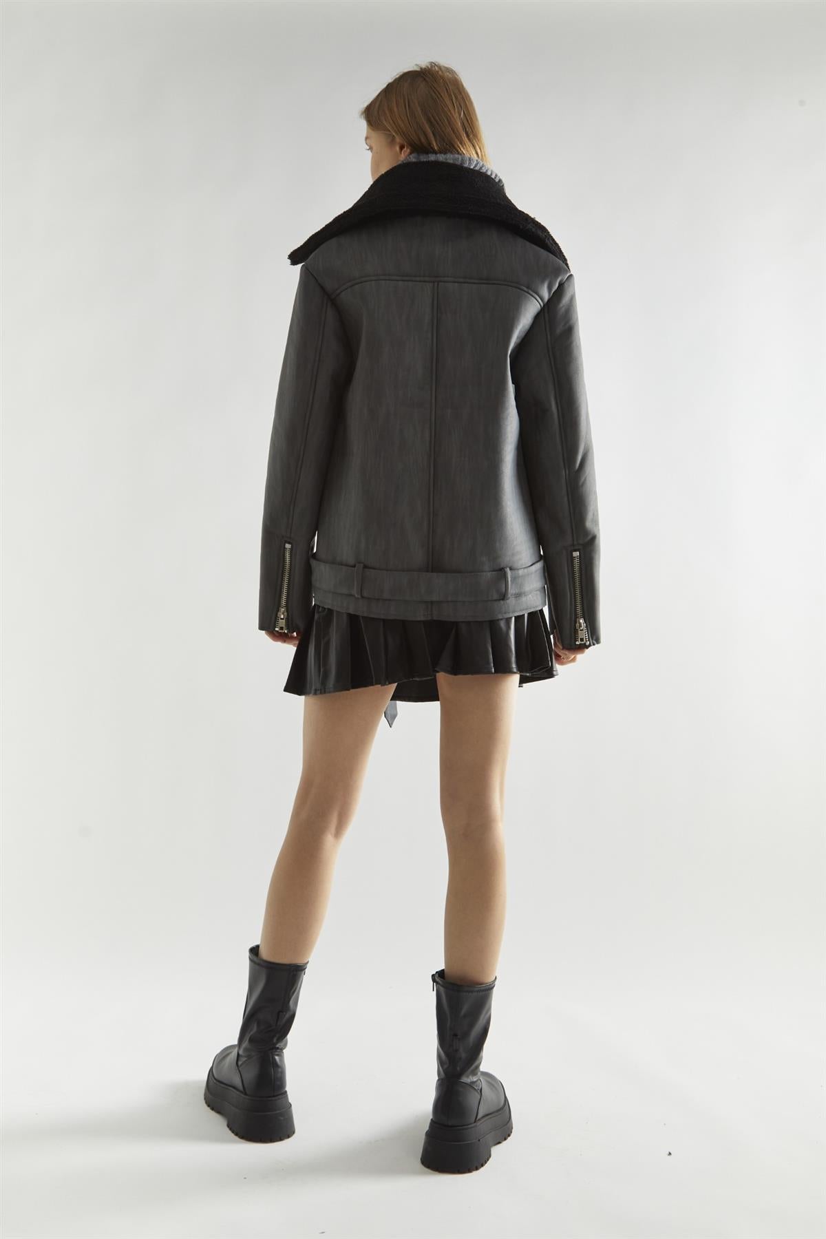 Glamorous Women's Washed Black Leather Midi- Jacket. Add some edge to your outerwear collection with our Washed Black Leather Midi Jacket. Crafted from soft leather with a worn-in feel, this jacket brings a cool, laid-back vibe to your look. The waist belt helps create a flattering, cinched shape, while the long sleeves and fur lining keep you warm and cozy. Its midi length offers extra coverage, making it perfect for layering over anything from jeans to dresses. With a balance of rugged texture and a touch of luxury from the fur lining, this jacket is both functional and stylish, ideal for cooler days when you want to stay warm without compromising on style.
