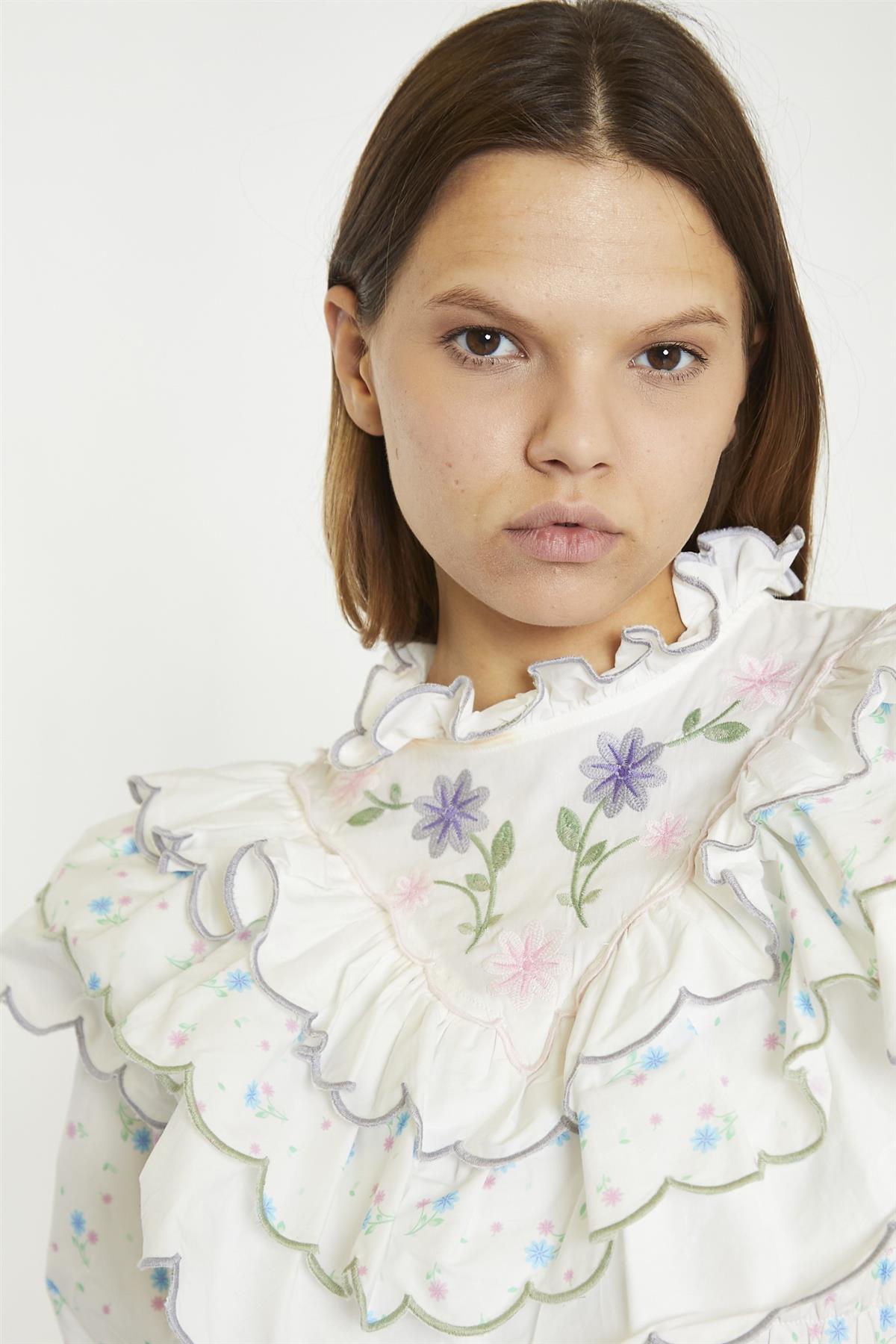 Glamorous Women's White Blue Pink Ditsy Extreme Ruffle Crop-Top. This playful crop top features a charming ditsy floral print in white, blue, and pink, perfect for adding a pop of colour to your wardrobe. The extreme ruffle detailing gives it a fun and flirty vibe, while the shirred waist ensures a comfortable and flattering fit. Short statement sleeves add a touch of drama without overwhelming the design. The cropped length is ideal for pairing with high-waisted bottoms, creating a balanced silhouette. For a coordinated look, team it with the matching skirt, or mix it up with your favourite jeans or shorts. This top is versatile enough for a casual day out or a summer party. Layer it under a denim jacket for cooler evenings, or wear it on its own to showcase its unique design. With its blend of comfort and style, this crop top is sure to become a favourite in your summer rotation.
