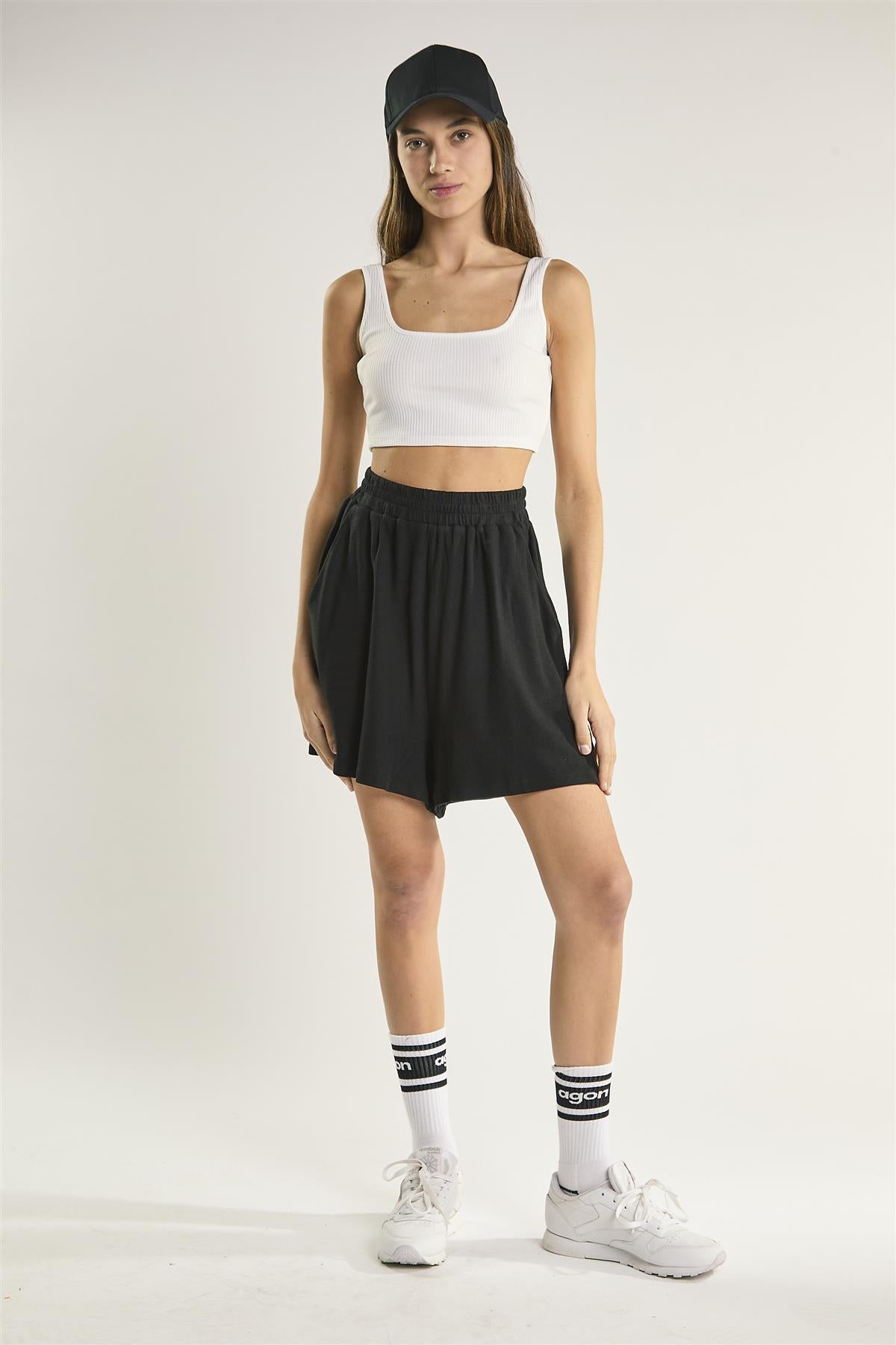 White-Rib Square-Neck Crop-Top
