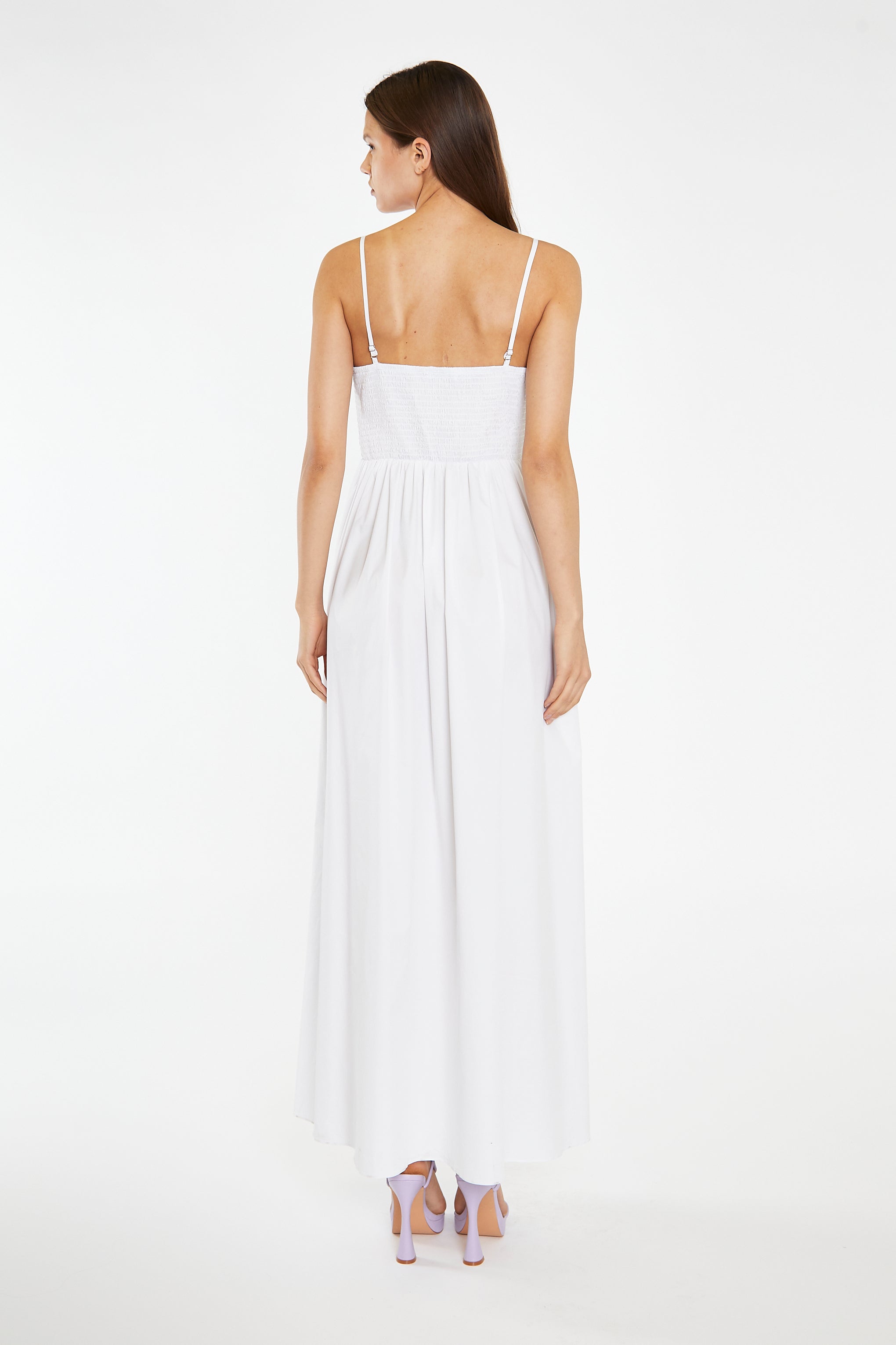 White Shirred Bodice Maxi-Dress
