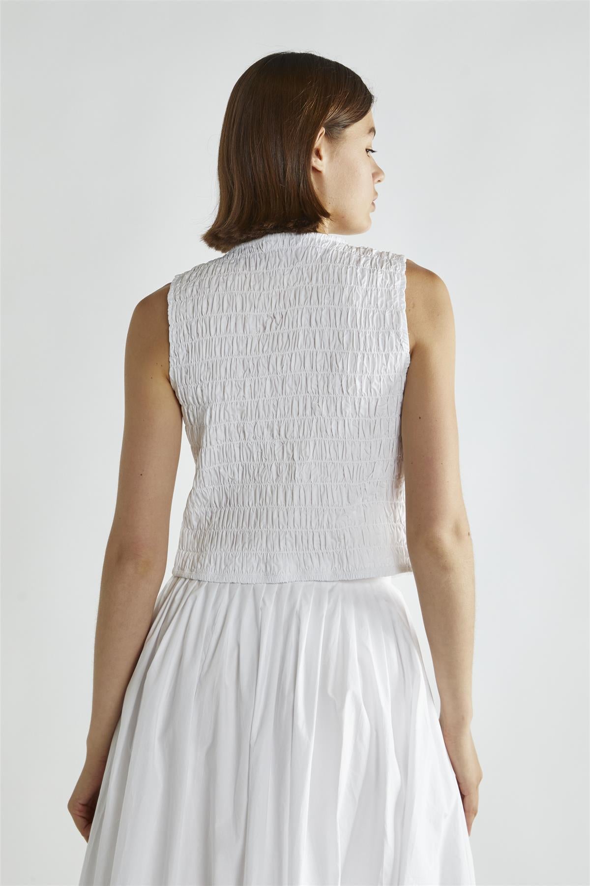 White Shirred Tie-Front Top