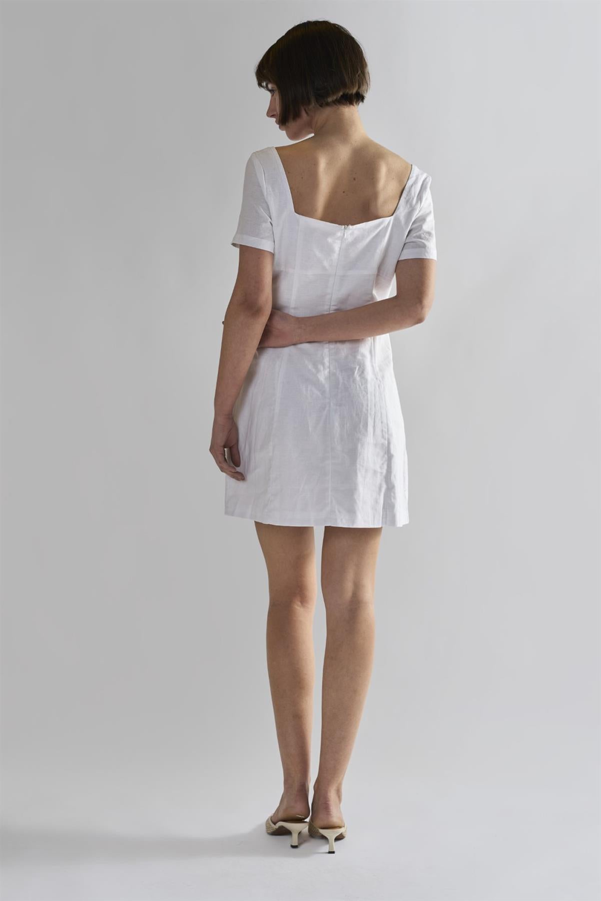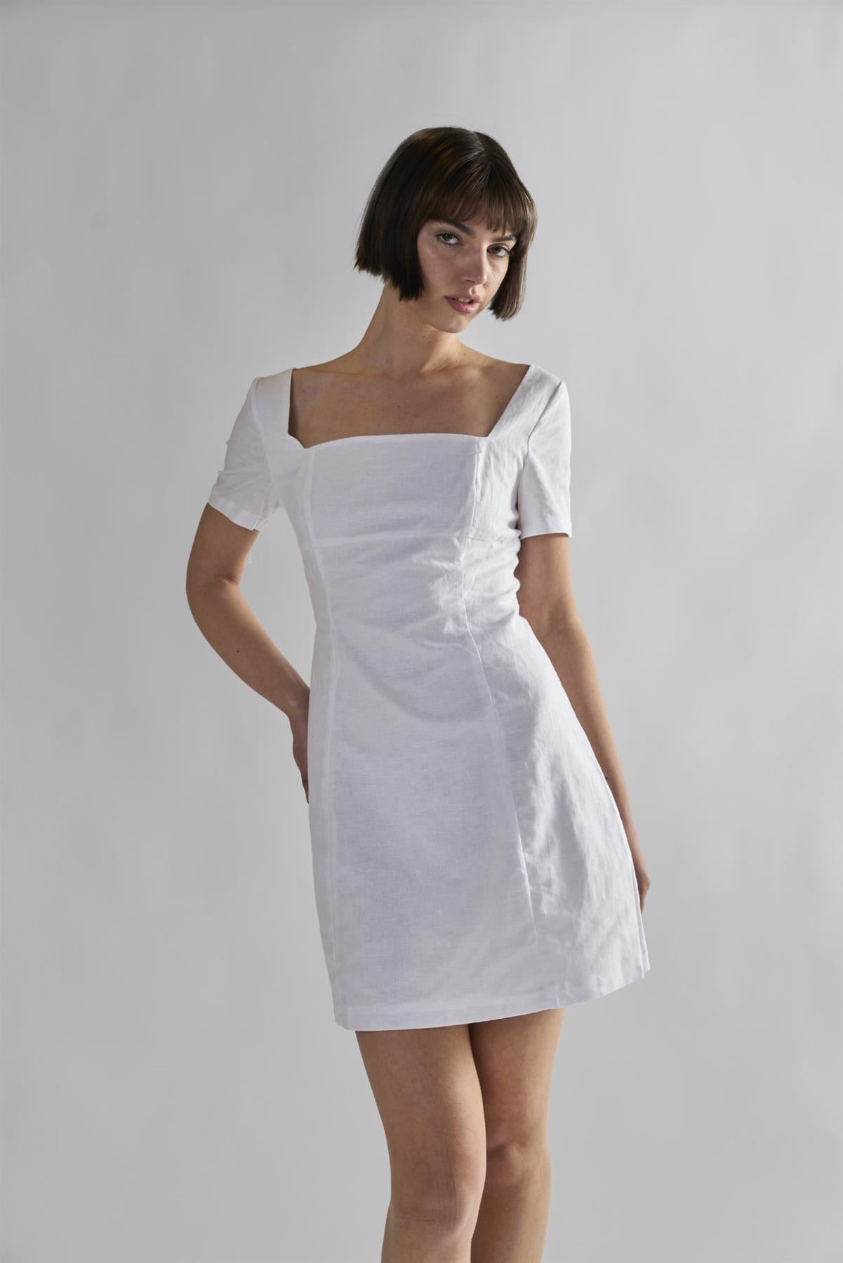 White Square-Neck-Mini-Dresses