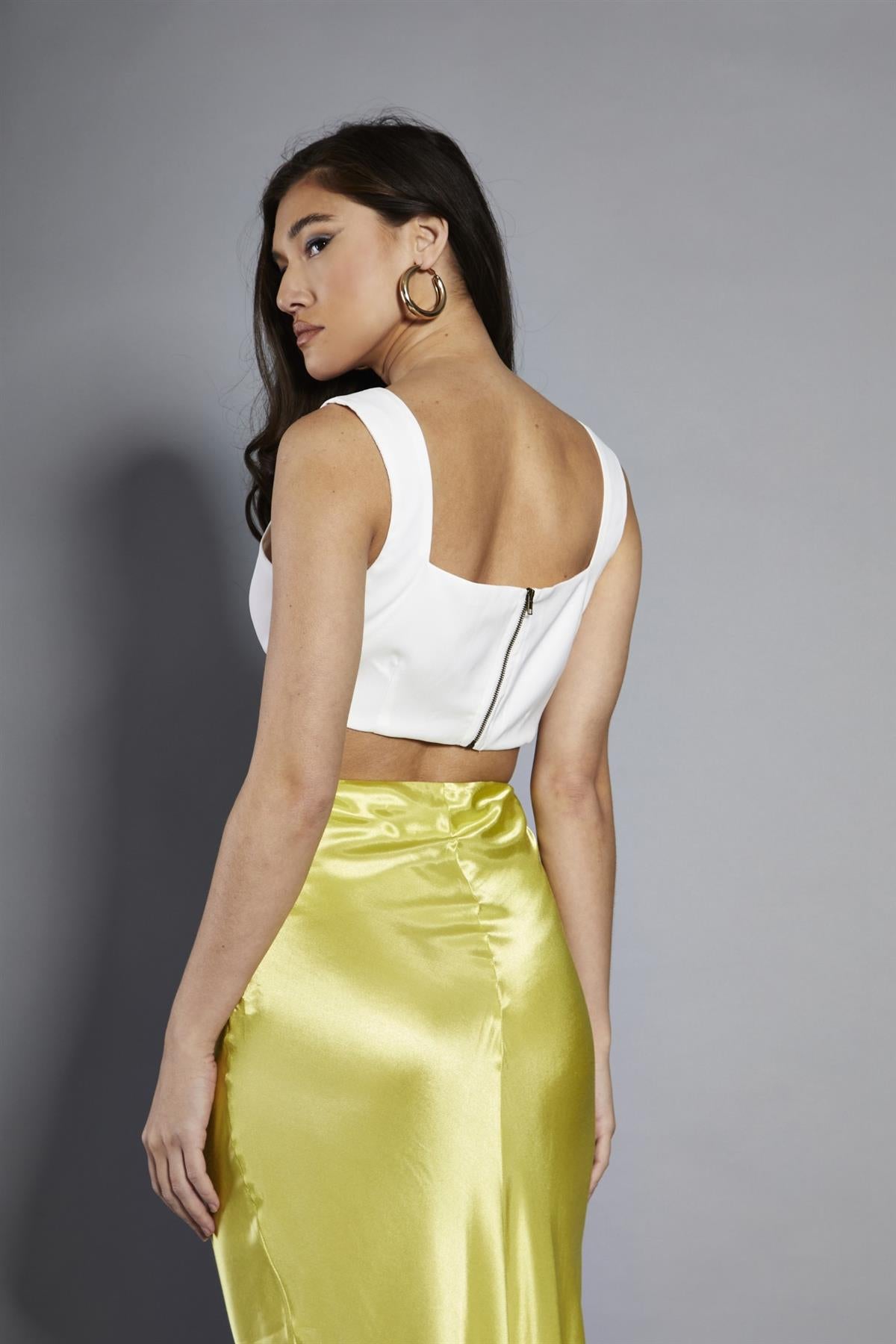 Glamorous Studio Women's White Square-Neck Sleeveless Crop-Top. This white square neck crop top is the perfect blend of simplicity and style. It's the kind of piece that effortlessly becomes a wardrobe staple, ready to mix and match with just about anything. The sleeveless design keeps you cool on warm days, while the square neckline adds a modern, geometric touch that flatters your collarbone and shoulders. A concealed zip fastening at the back ensures a smooth, polished look and makes getting dressed a breeze. The crisp white colour is fresh and versatile, pairing beautifully with bold prints or your favourite denim. Throw it on with high-waisted shorts for a casual summer look, or dress it up with a flowing maxi skirt for an evening out. The crop length is just right – not too short, not too long – hitting at the perfect spot to accentuate your waistline. This top is a true chameleon, easily transitioning from day to night, casual to dressy, depending on how you style it. It's the kind of piece you'll reach for again and again, always feeling put-together and confident.