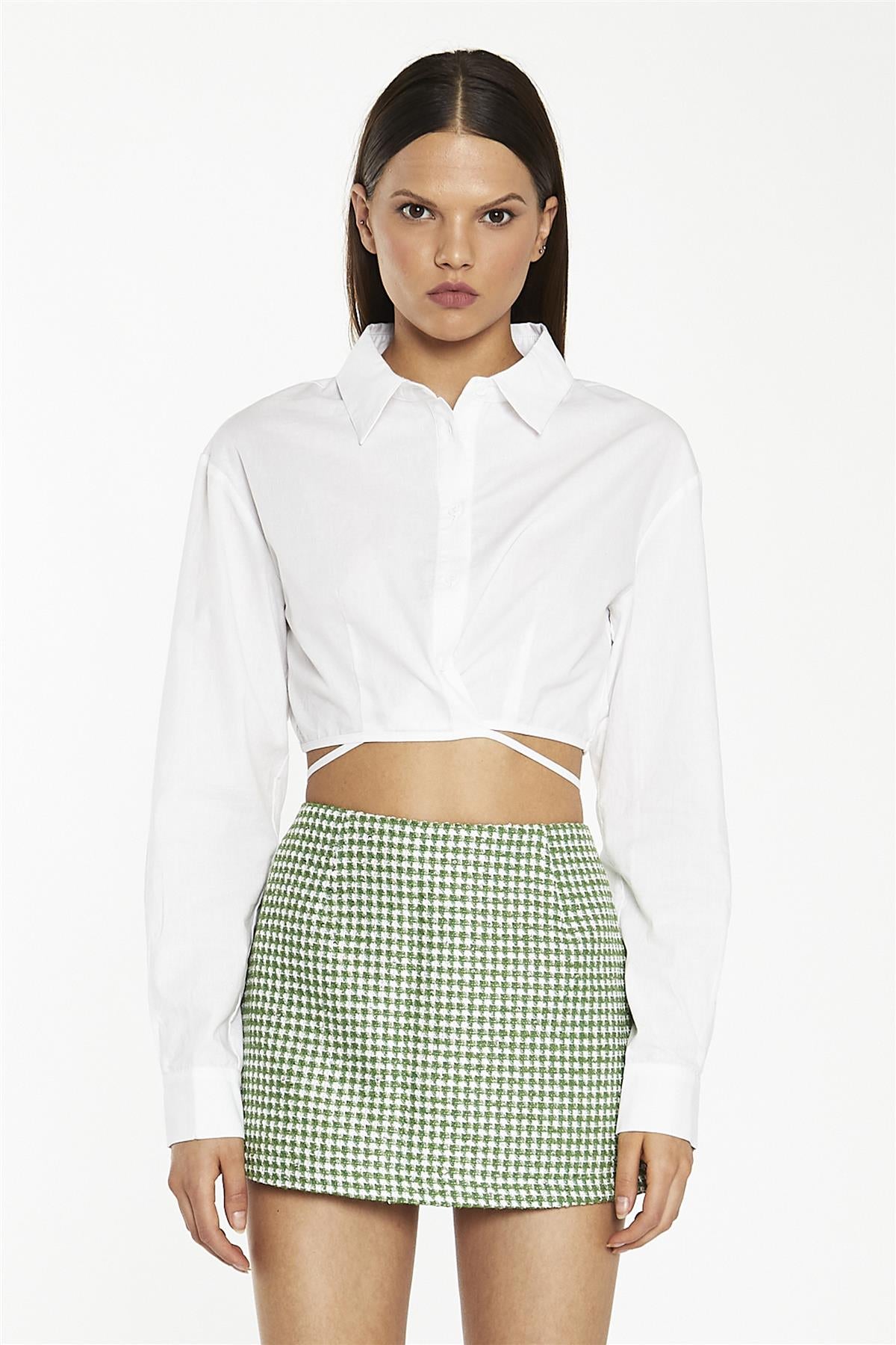 Glamorous Women's White Waist-Tie Crop-Shirt. Looking for a fresh, modern take on a wardrobe staple? Check out this white waist-tie crop shirt. It takes the classic button-down shirt silhouette and gives it a stylish update with a cropped length and tie waist detail. The crisp white colour is perfect for brightening up your look, while the tie waist cinches in your midsection for a flattering, defined shape. The cropped length pairs perfectly with high-waisted jeans or trousers, showing just a hint of skin for a flirty, feminine vibe. Whether you're dressing it up with a blazer and heels or keeping it casual with sneakers and denim, this shirt is sure to become a go-to piece in your wardrobe. The classic shirt details, like a pointed collar and button placket, keep things polished, while the modern touches add a fresh, fashion-forward twist. So why not give your wardrobe a style boost with this versatile and chic crop shirt?.