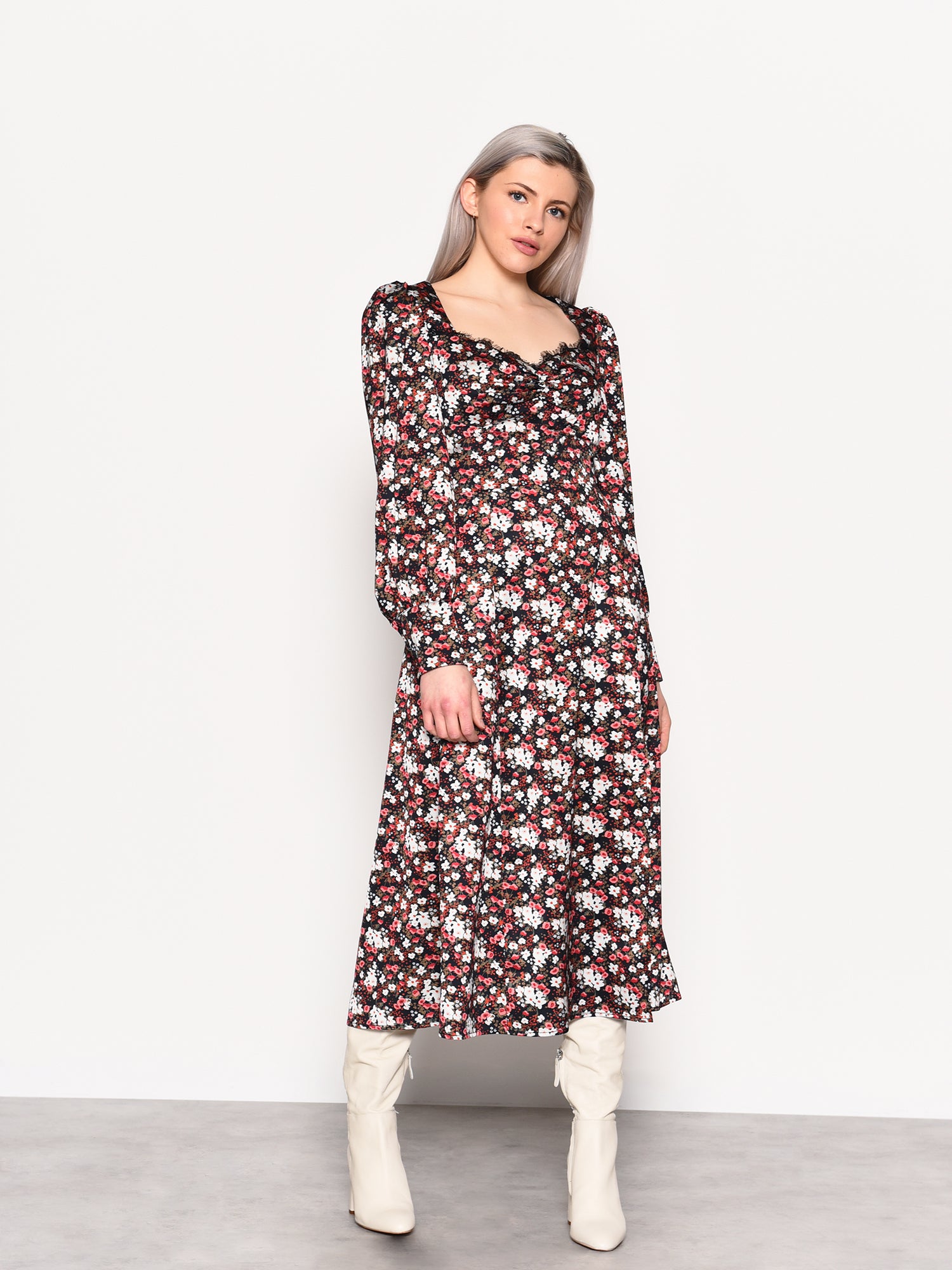 Glamorous Women’s Winter Ditsy Floral Side Split Midi Dress. This autumn winter, florals are all the rage. This lace front detailed midi dress is designed with a side split for a feminine interpretation to a style staple.