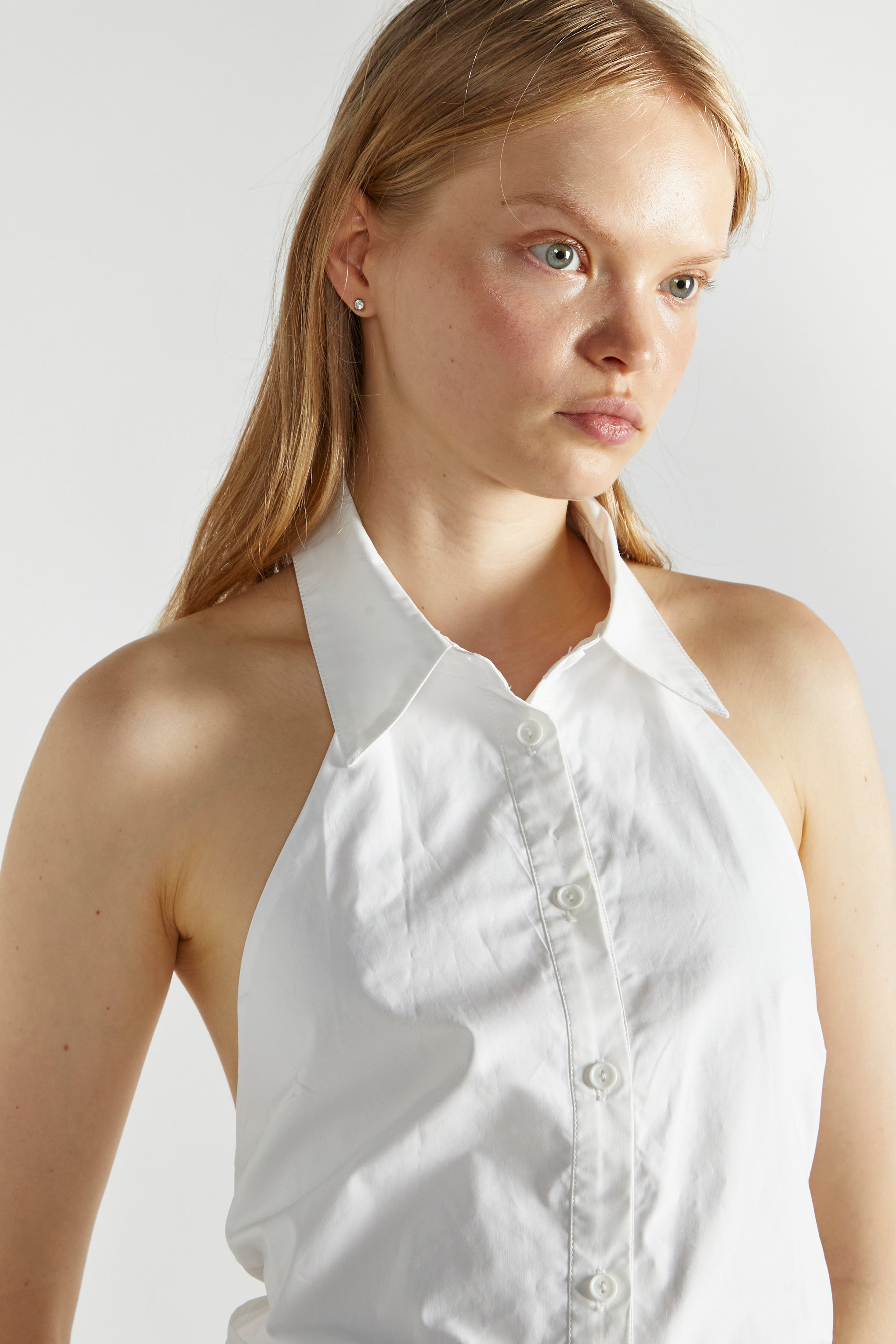 Glamorous Women's White Tie Back Tops. Let's chat about this charming top that's about to become your new wardrobe MVP. The tie-back detailing is like a secret surprise, adding a flirty touch and letting you customize the fit to your liking. Those buttons down the front? They're not just for show - they give you the power to decide how much skin you want to show off. And the sleeveless design is a total win for those sunny days when you want to feel the warmth on your shoulders. This top is like a fashion chameleon - pair it with your favourite high-waisted jeans for a casual lunch date, or tuck it into a flowy skirt for a breezy evening look. The fabric feels like a gentle hug against your skin, keeping you comfy all day long. It's one of those pieces that effortlessly transitions from day to night - just add some statement earrings and you're ready for whatever the evening brings. Plus, it's a breeze to pack, making it the perfect travel buddy for your summer adventures. Trust us, this mini wonder is going to have you feeling like a ray of sunshine every time you put it on!