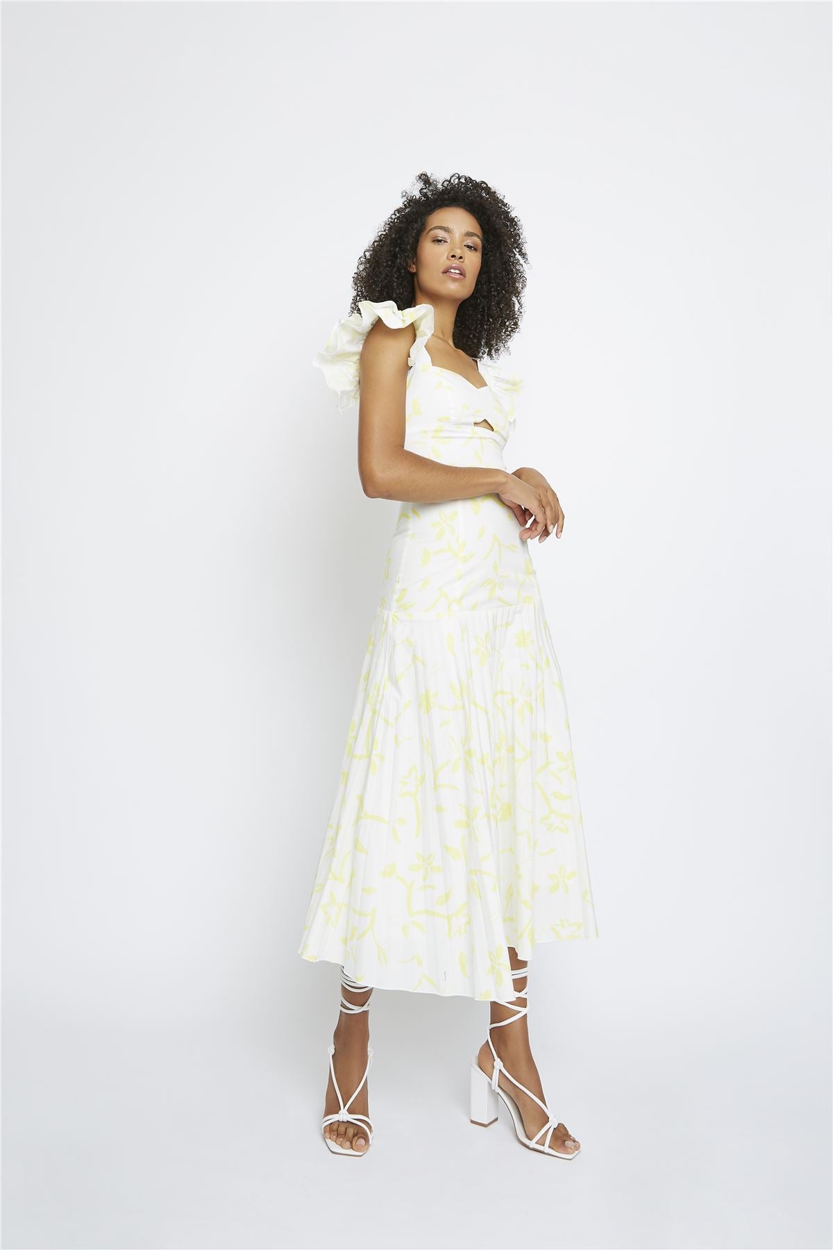 Glamorous Women's Yellow-Brushstroke-Flower Sweetheart-Neckline Crop-Top. Blossom into your best self with this eye-catching crop top, featuring a captivating brushstroke flower design that's sure to turn heads. The sweetheart neckline adds a touch of romance, framing your décolletage beautifully and giving you a confidence boost. Short statement sleeves bring a playful flair to the piece, making it stand out from your average top. This crop top isn't just clothing; it's a work of art you can wear, bringing a splash of creativity to your wardrobe. The vibrant hue radiates positivity, making it impossible not to smile when you put it on. For a coordinated look that's bound to impress, pair it with the matching skirt - it's a combo that's perfect for summer parties, art gallery openings, or any occasion where you want to make a stylish statement. The cropped length allows for versatile styling options, from high-waisted jeans for a casual day out to a midi skirt for a more polished ensemble. Let this top be your go-to piece for those days when you want to feel like a walking masterpiece, spreading joy and artistic flair wherever you go.