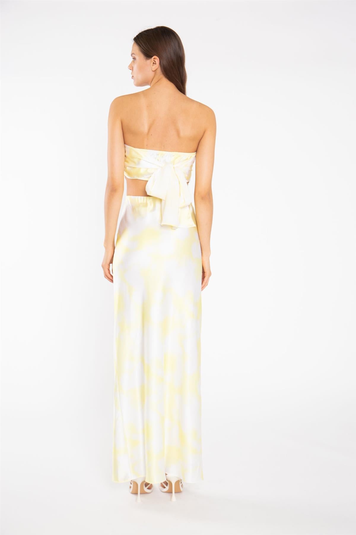 Glamorous Women's Yellow Print-Satin Bias-Cut Maxi-Skirt. Complete your spring wardrobe with our Yellow Print Maxi Skirt. Featuring a bias cut design, and elasticated waistband, this skirt offers comfort and style for any occasion. Pair with the matching top and be effortlessly chic with this must-have piece.